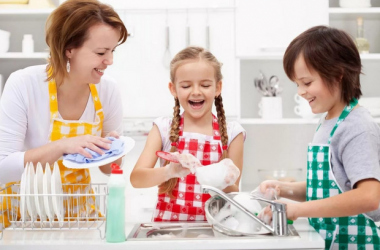 Помогать мыть посуду или с помощью загружать посудомоечную машину.