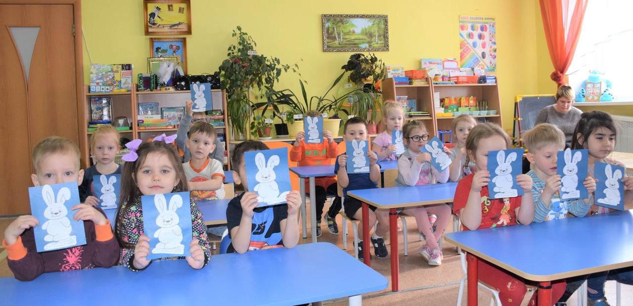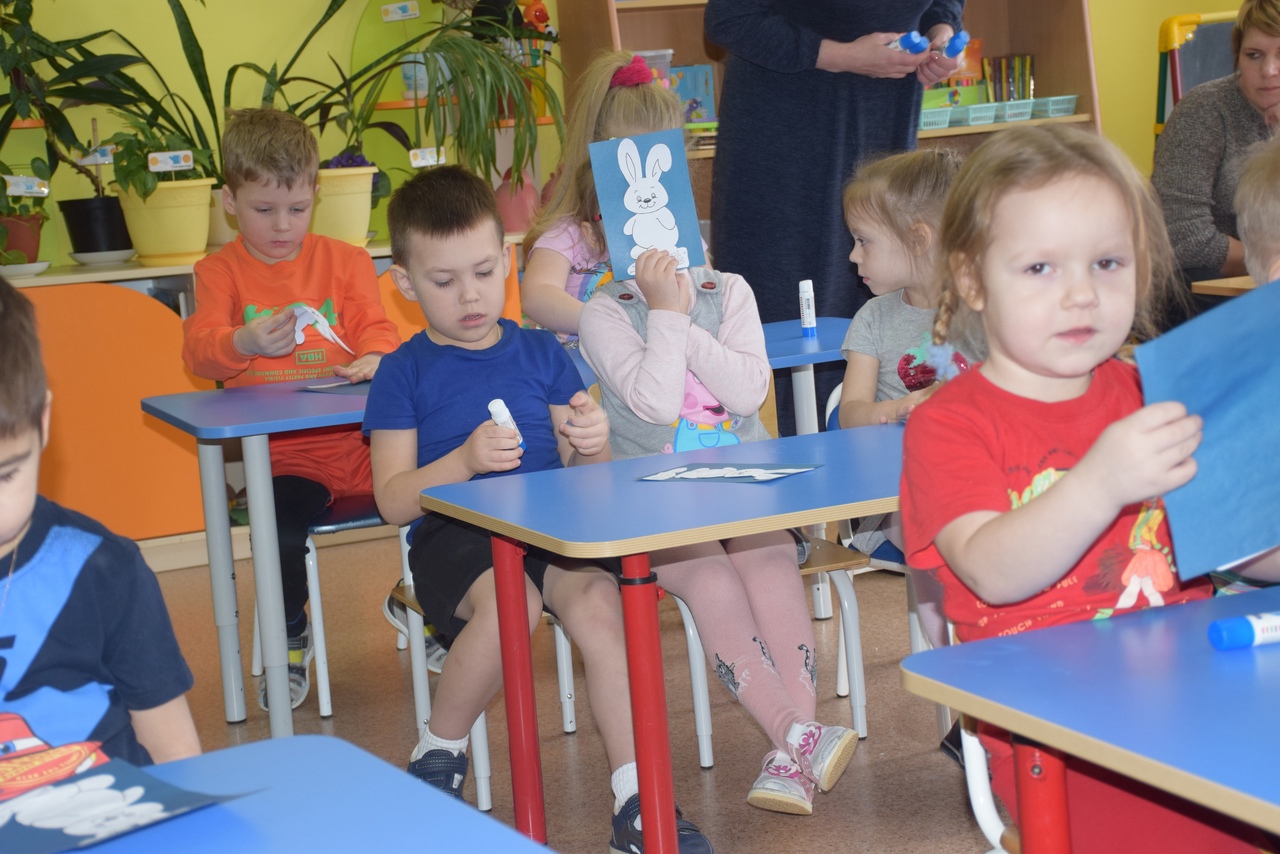 А еще кроме интересной сказки, наши ребята сделали поделку с изображением зайки в белой шубке.
