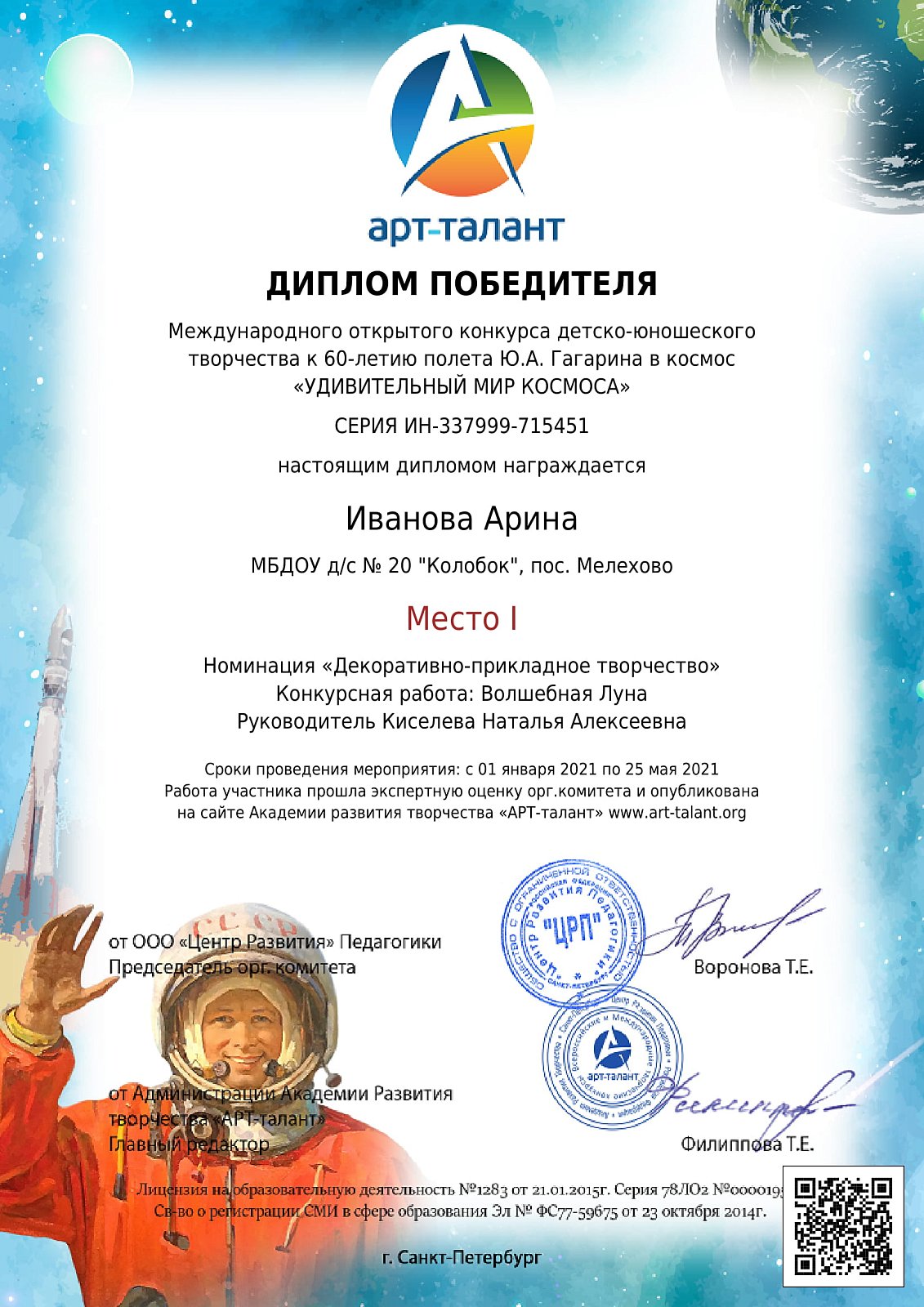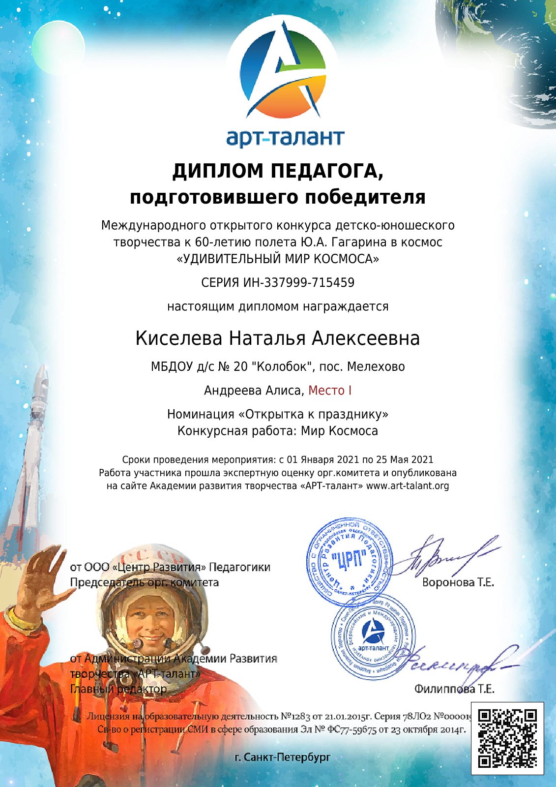 Средняя группа нашего детского сада поучаствовала в конкурсе, посвященному 60-летию Первого полета в космос.