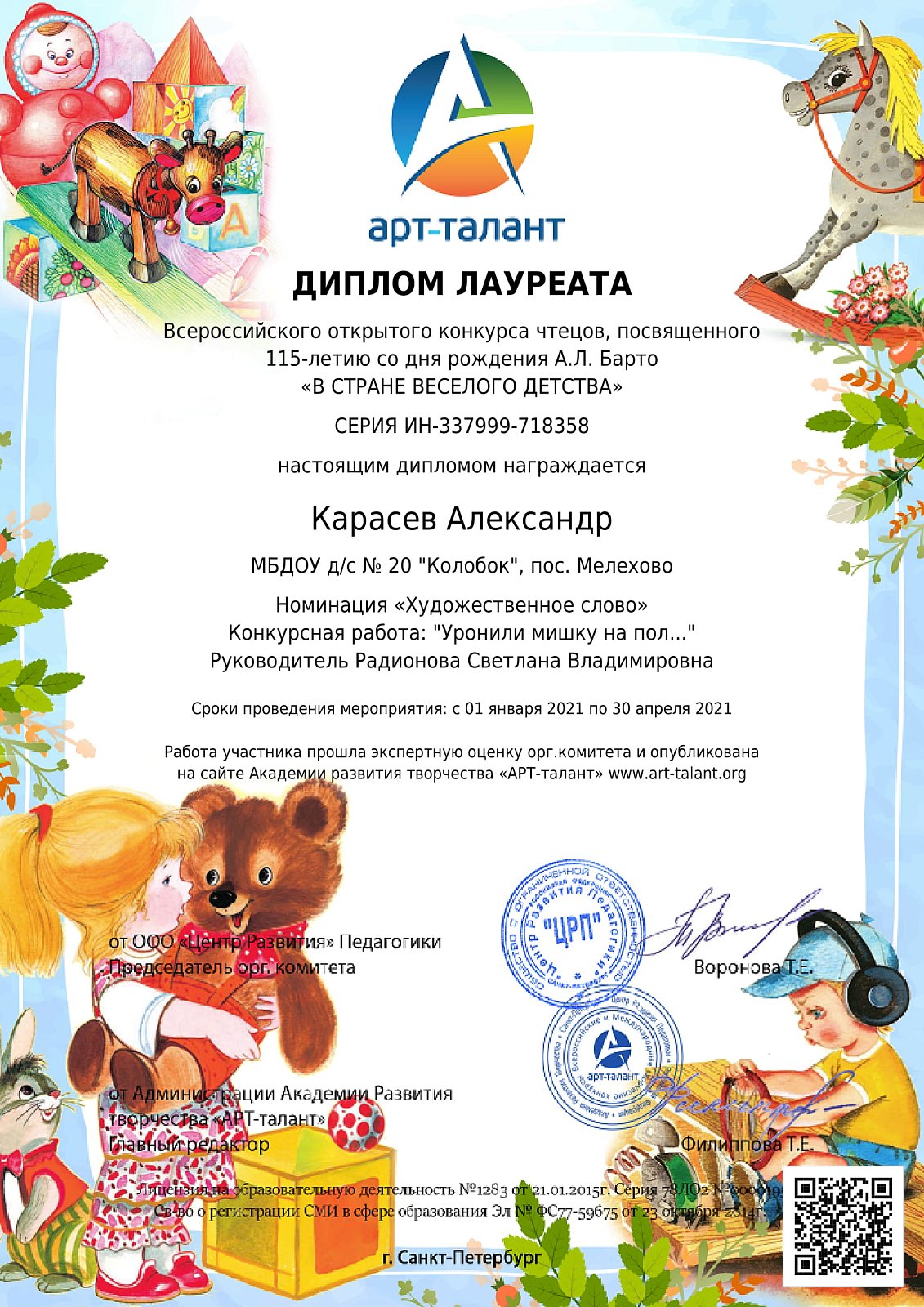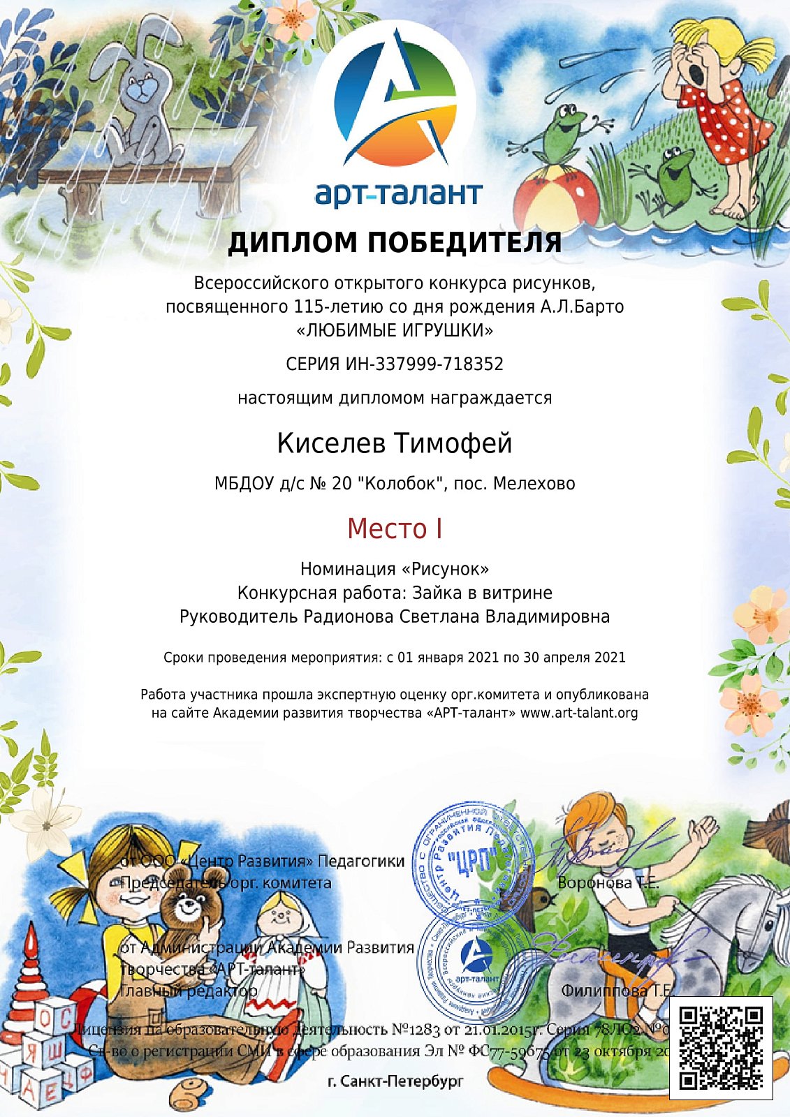 Они смело приняли участие в конкурсах, посвященных Пасхе и 115-летию Агнии Барто!