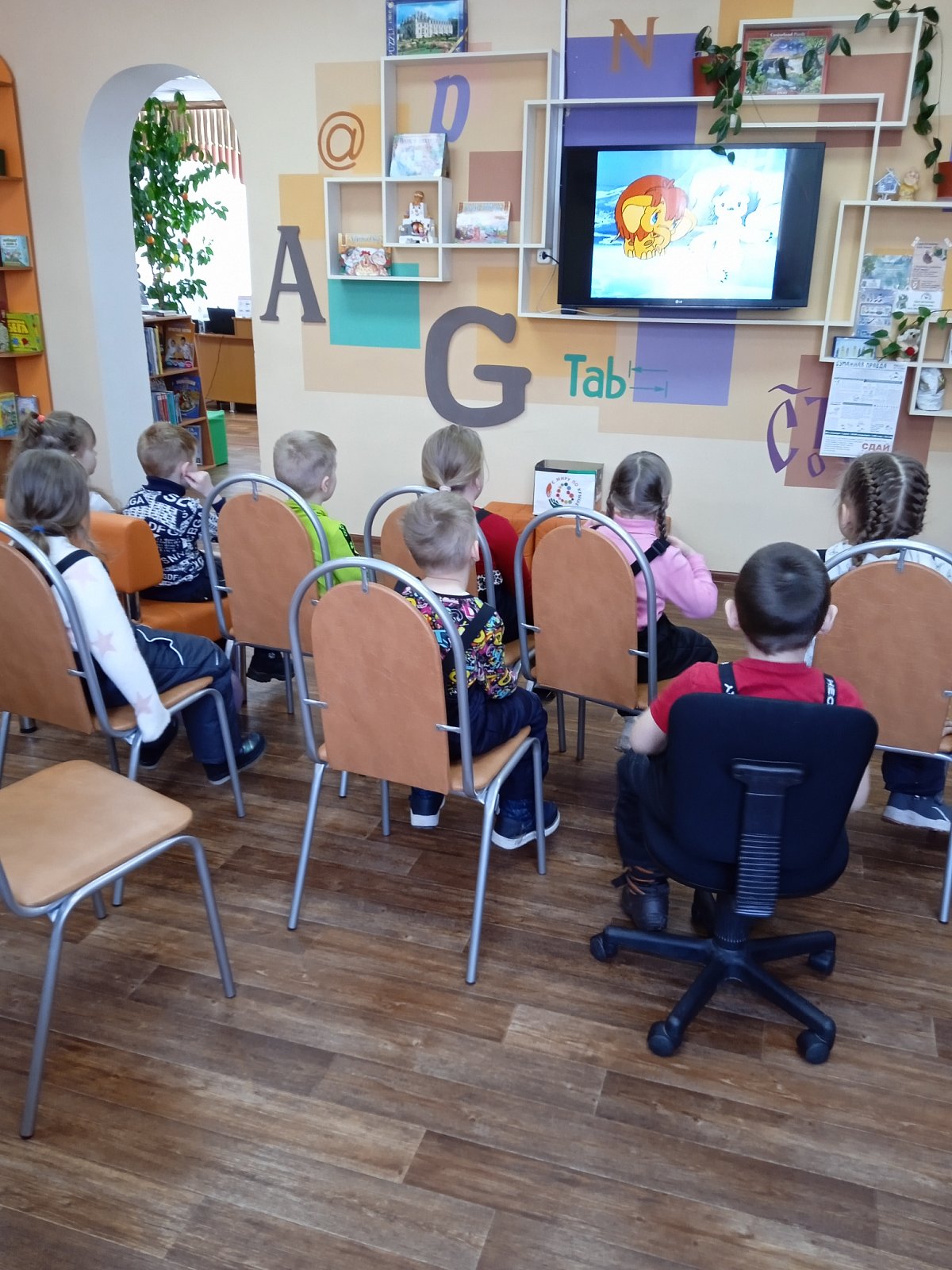 Библиотекарь Светлана Владимировна провела экскурсию по своим владениям, познакомила ребят с игровыми зонами. А дальше наши ребят ждала сказка Е.Белинской "Слонёнок и шарики". Сказка направлена на решение детских проблем, а также на воспитание любви и уважения к близким.