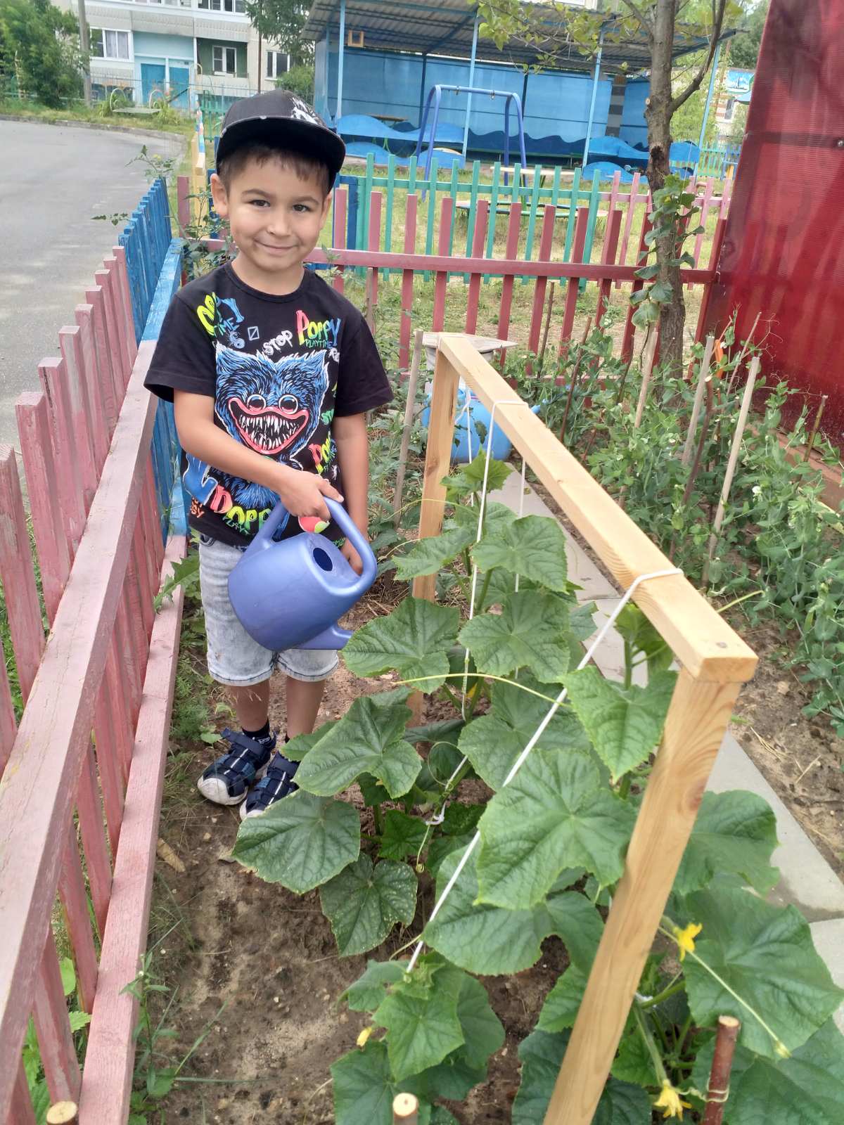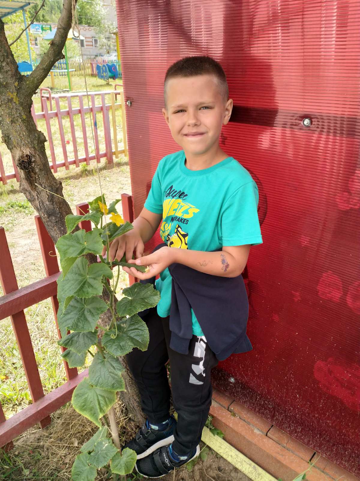Традиционно каждый год на участке группы "Затейники" летом появляется мини-огород. На каждой прогулке ребята с удовольствием ухаживают за растениями и цветами:поливают, рыхлят, пропалывают, удобряют. И это лето уже радует нас небывалым урожаем: изобилием огурчиков, горошка и помидорок. А самая приятная часть - угощаться тем, что выросло благодаря нашим трудам! Такие овощи самые вкусные и даже кажется, что витаминов в них больше!