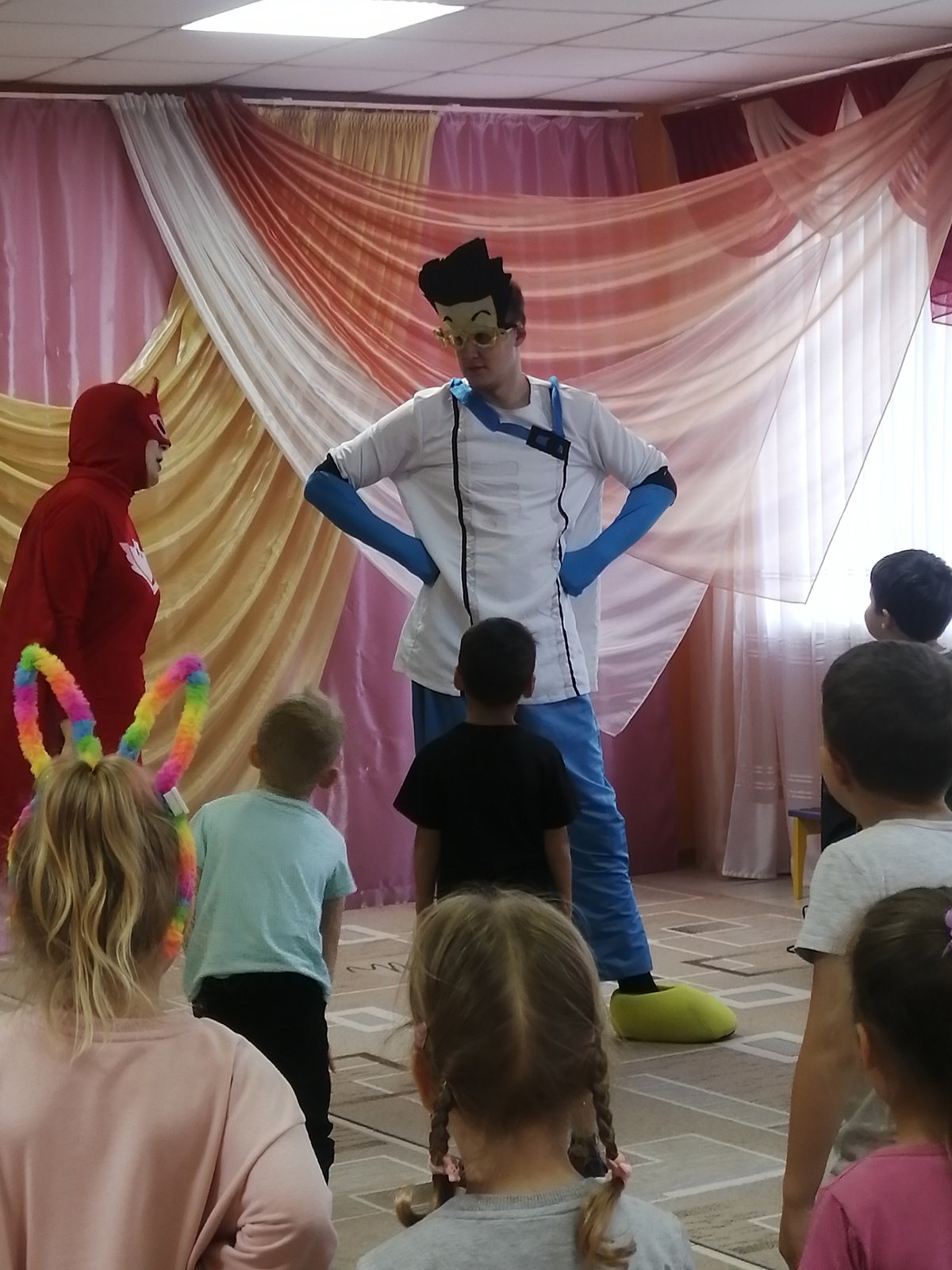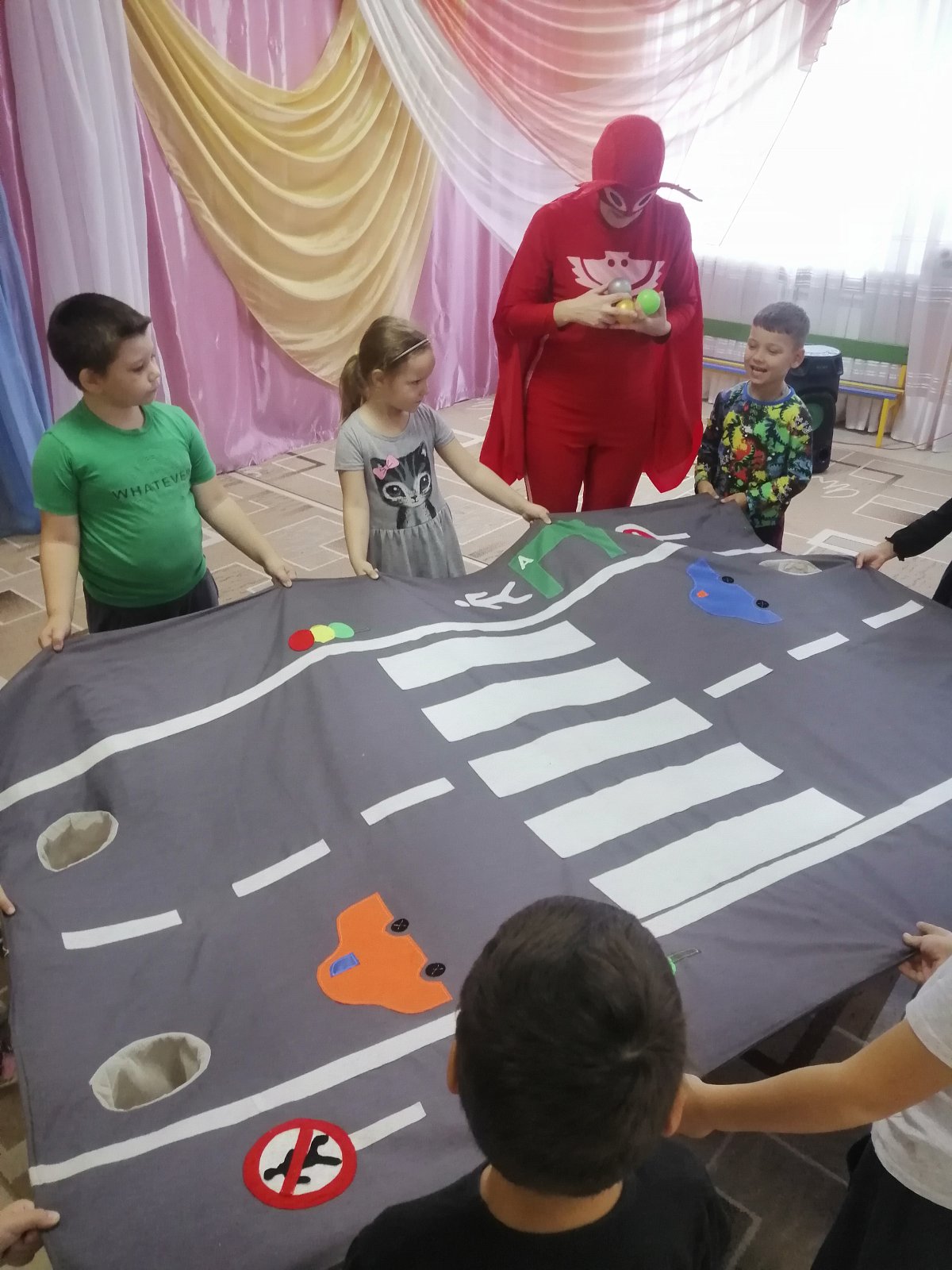 29 сентября в наш детский сад с тревожной новостью примчались Кэтбой и Арлетт: "Ребята, Ромео задумал что-то недоброе!" Герои рассказали, что скоро все начнут забывать правила дорожного движения. Но что же тогда случится в мире? Произойдёт огромное количество аварий, пешеходы не смогут переходить дорогу, начнётся абсолютная путаница! Воспитанники детского сада " Колобок" решили не сидеть сложа руки и помочь героям все исправить. Ребята напомнили всем значения сигналов светофора, рассказали о том, как правильно вести себя на дороге, как важно быть внимательным и осторожным! И даже главного злодея Ромео они смогли убедить исправиться! В весёлых заданиях и танцах время пролетело незаметно и пришло пора прощаться. Герои в масках поблагодарили деток за помощь. Будем ждать их в гости снова!