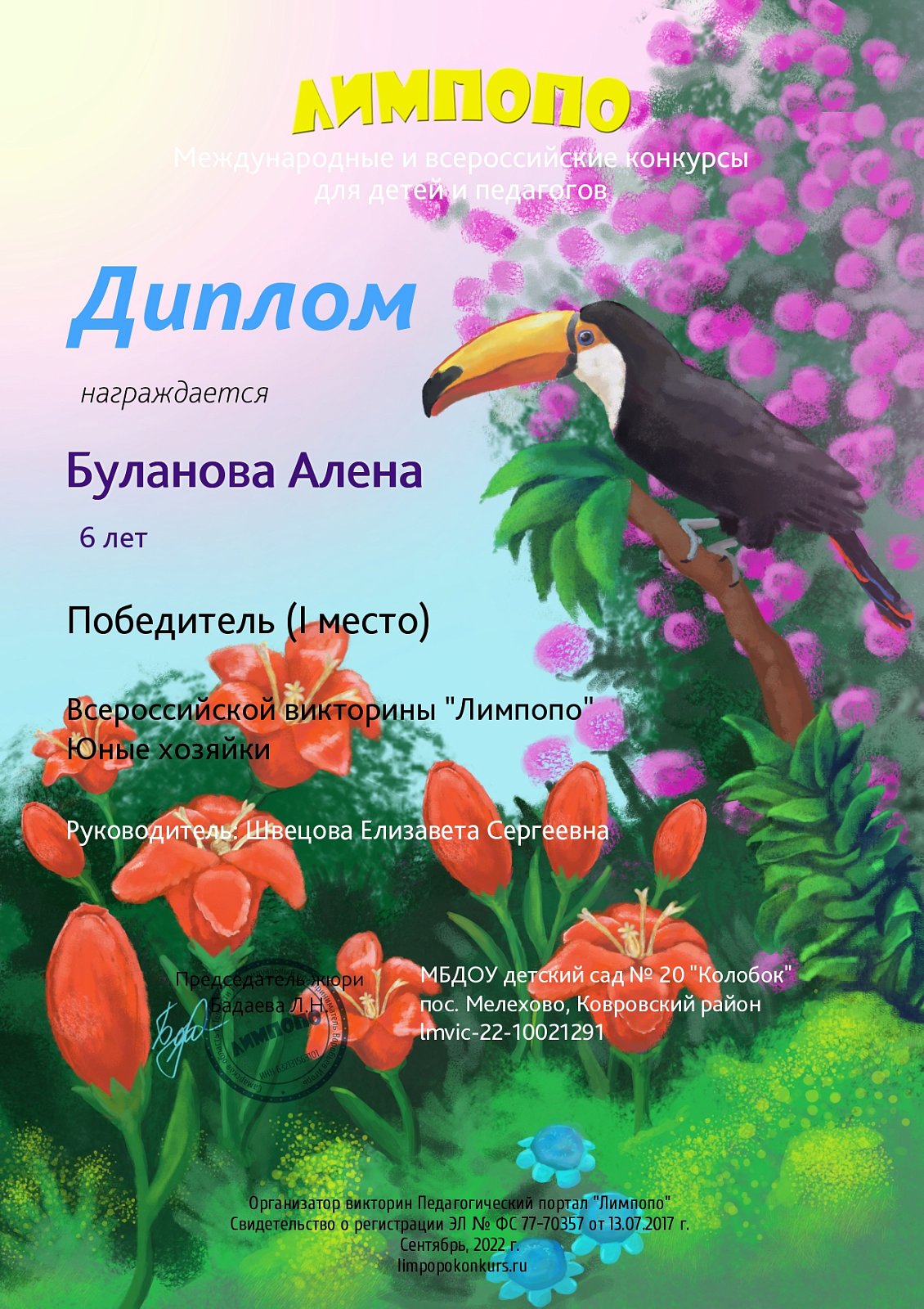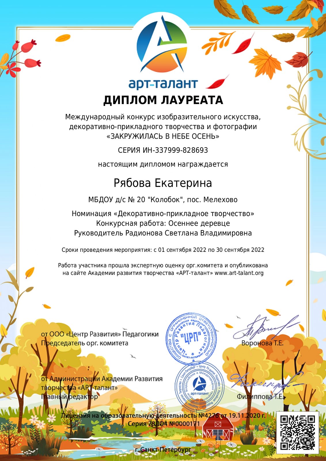 За сентябрь у наших педагогов так же накопилось немало грамот и дипломов. В этот раз участие принимали даже самые маленькие наши воспитанники со своими семьями. Поздравляем всех!