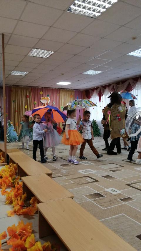 Долго мы ждали случая повеселиться, но вот и в наш детский сад заглянула Осень. Принесла нам разноцветные листья, закружила ребят в танце. Да только не очень доволен был Дедушка Леший, ведь в его лесу звери устроили настоящий беспорядок: птицы на юг лететь не хотел, медведи в спячку не укладывались, зайцы к зиме не готовились. Чуть Леший нашу Осень не прогнал, но ребята помогли ему справиться со всеми его бедами да порадовали песнями и плясками. За что и получили приятные угощения от Осени да от Хозяина Леса.