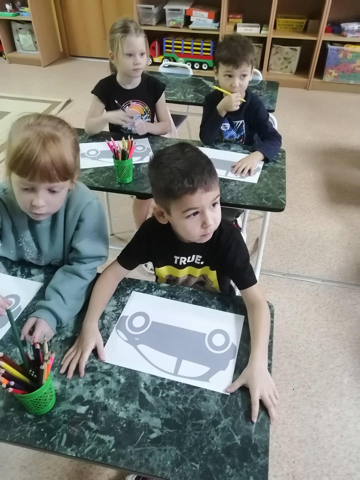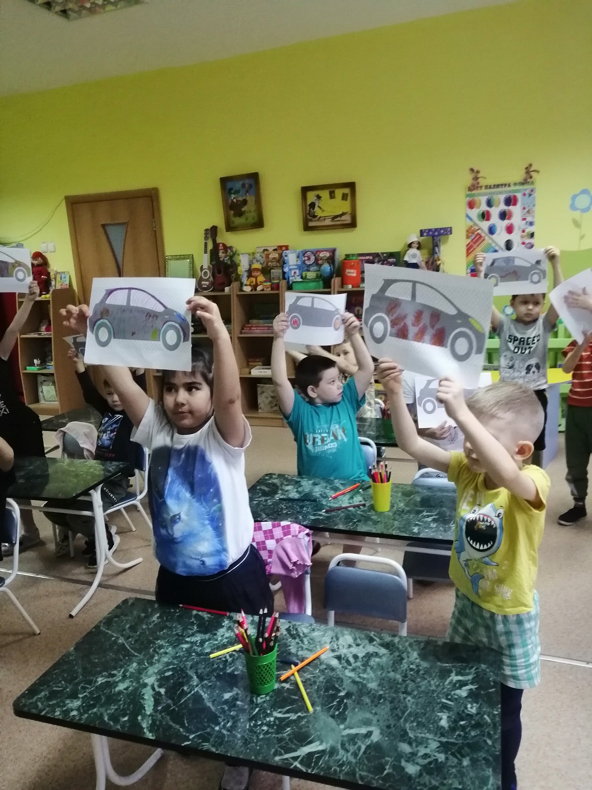 Мы рады, что у нас сложилось такое тёплое сотрудничество, от которого одни сплошные плюсы! Ведь мы каждый раз слышим новую интересную и пожнаваткльную историю. Учимся чему-то новому, сопереживаем персонажам сказок, раскрашиваем и вырезаем. Вот и в этот раз ребята создавали машину своей мечты, украшая её узорами и картинками.