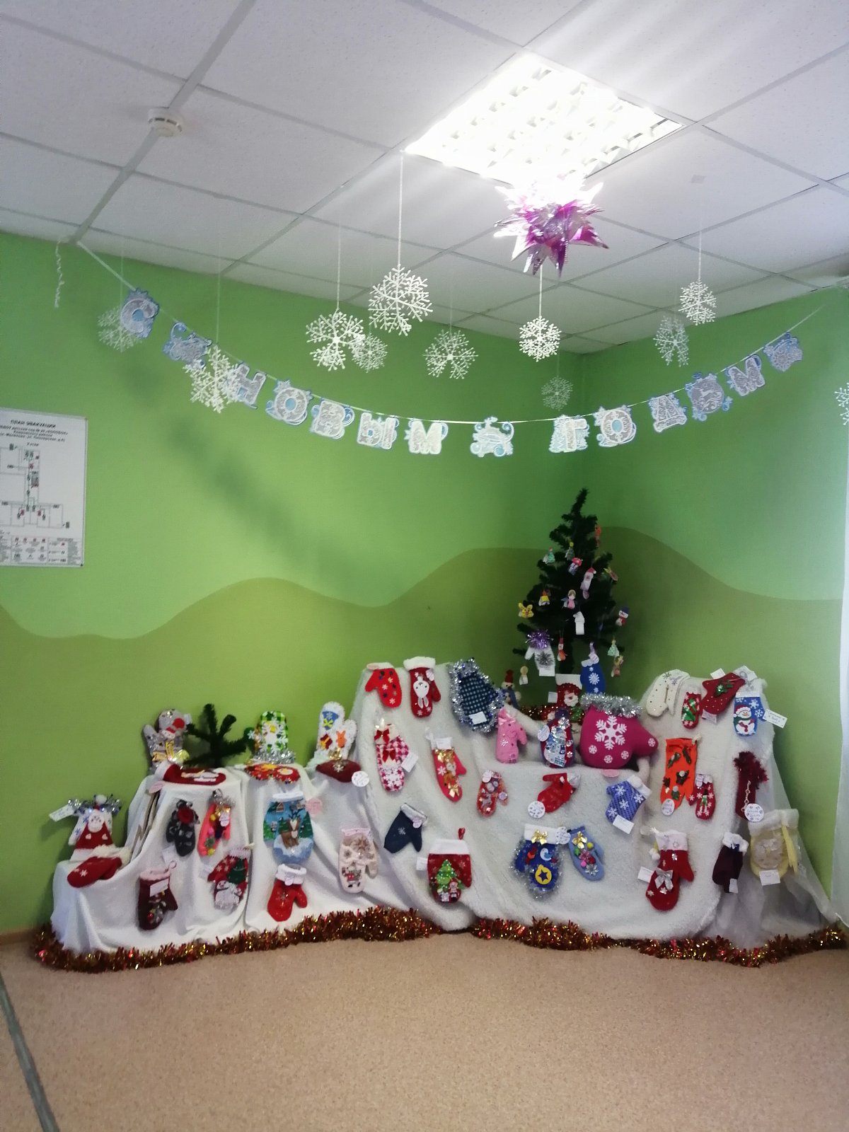 Внимание! Внимание! Не проходите мимо! Только на нашей зимней выставке самые яркие и тёплые рукавички! В этом году конкурс к новому году стал самым пушистым и согревающим, ведь мы предложили воспитанникам и родителям создать настоящую варежку Деда Мороза! И только посмотрите, как пестро стало в нашем холле!