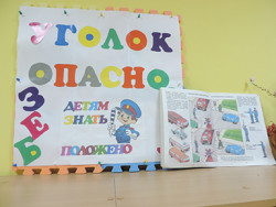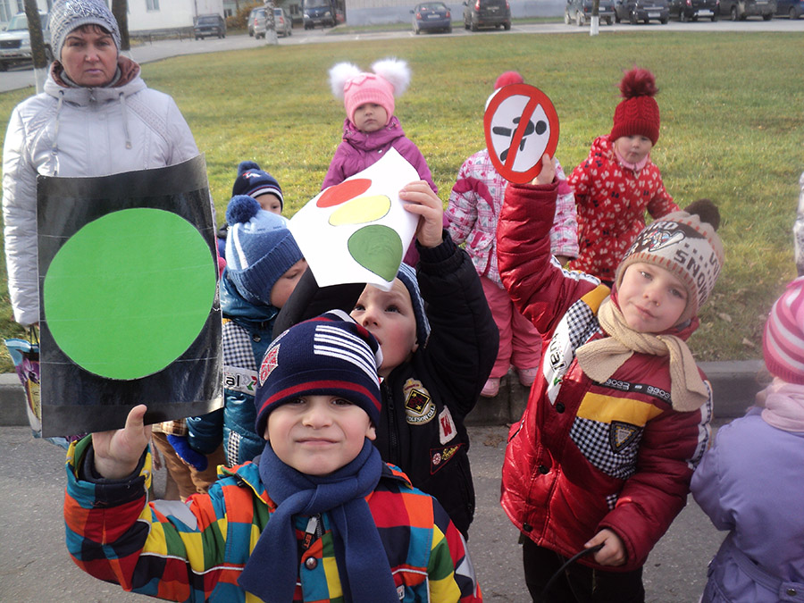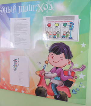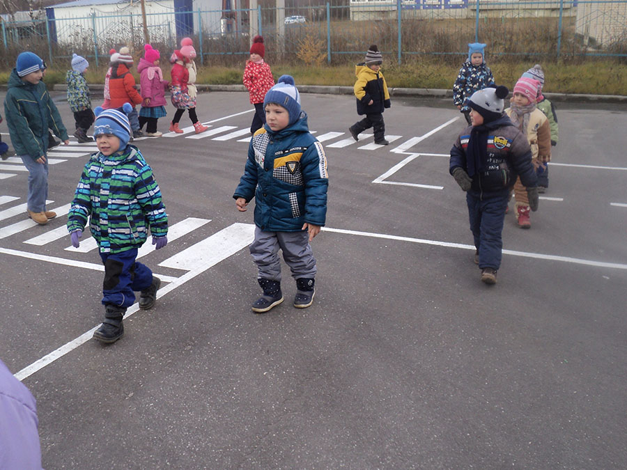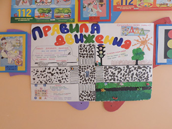 В рамках работы по данному направлению, в детском саду прошел цикл занятий по правилам дорожного движения. А так же организована выставка детских работ, в холле 2 этажа размещен стенд, дети ходили на экскурсию к пешеходному переходу, к остановке автобуса. Ну и конечно же в процессе игры закрепляли свои знания на площадке по ПДД на территории детского сада.