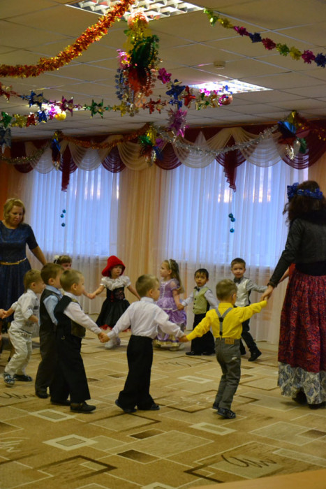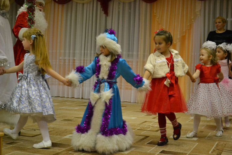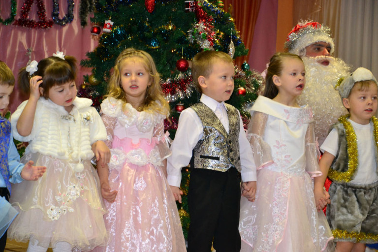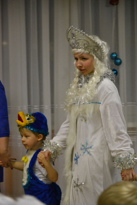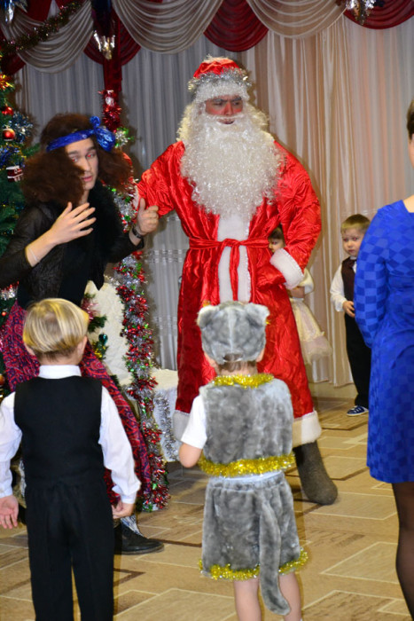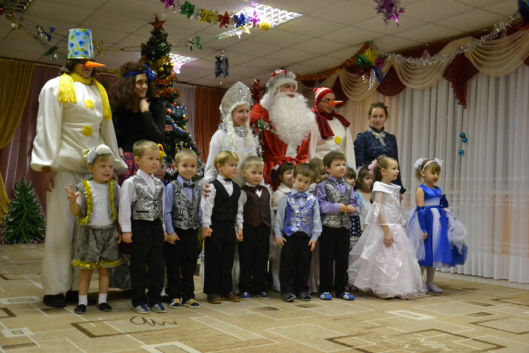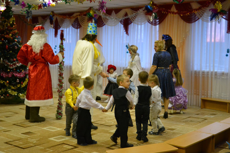 Дети танцевали, пели, спасали елку от заклятия Бабки-Ежки и радовали родителей. Шутя, ребята справились со всеми задачами, которые задали им снеговички Тиша и Тоша, развеселили Бабу-Ягу и порадовали стихами Дедушку Мороза, а тот в ответ наградил всех вкусными подарками.