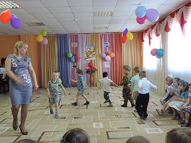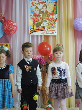 6 мая в детском саду «Колобок» прошел торжественный утренник, посвященный этому великому дню. Все воспитанники, сотрудники и родители пели военные песни «Катюша», «Землянка» и, конечно же, «День Победы». Ребята приготовили много стихов о войне и мире, показали танцы «Яблочко», «Синий платочек», «Казачок». Завершился праздник прекрасным маршем цветов во славу Победы и Мира на земле. По окончании торжества воспитанники, родители и воспитатели отправились к обелиску погибшим воинам для возложения цветов. Мы помним, мы гордимся подвигом русских солдат, матерей и юных защитников Родины.