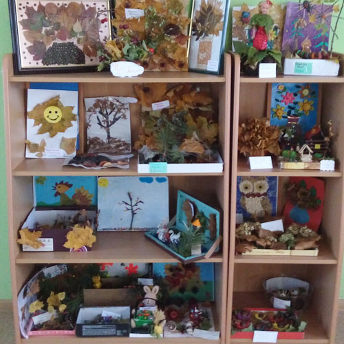 Наш холл запестрел яркими красками, зашуршал осенними листочками и запахом леса. С помощью природных материалов, пластилина и фантазии 33 семьи создали для конкурса 35 чудесных работ. Каждый раз, когда в стенах садика объявляют выставку или конкурс, принимая от родителей работы, коллективу остается только поражаться неограниченному воображению, интересным задумкам и умелому выполнению всех поделок. Хочется всё рассмотреть до мельчайших деталей, удивляясь творческим талантам наших воспитанников и их семей.