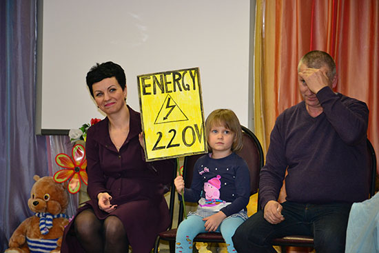 2 группа – семья Ильинских (Марина Викторовна, Игорь Вячеславович и Вероника – 4 года) – команда 220 вольт