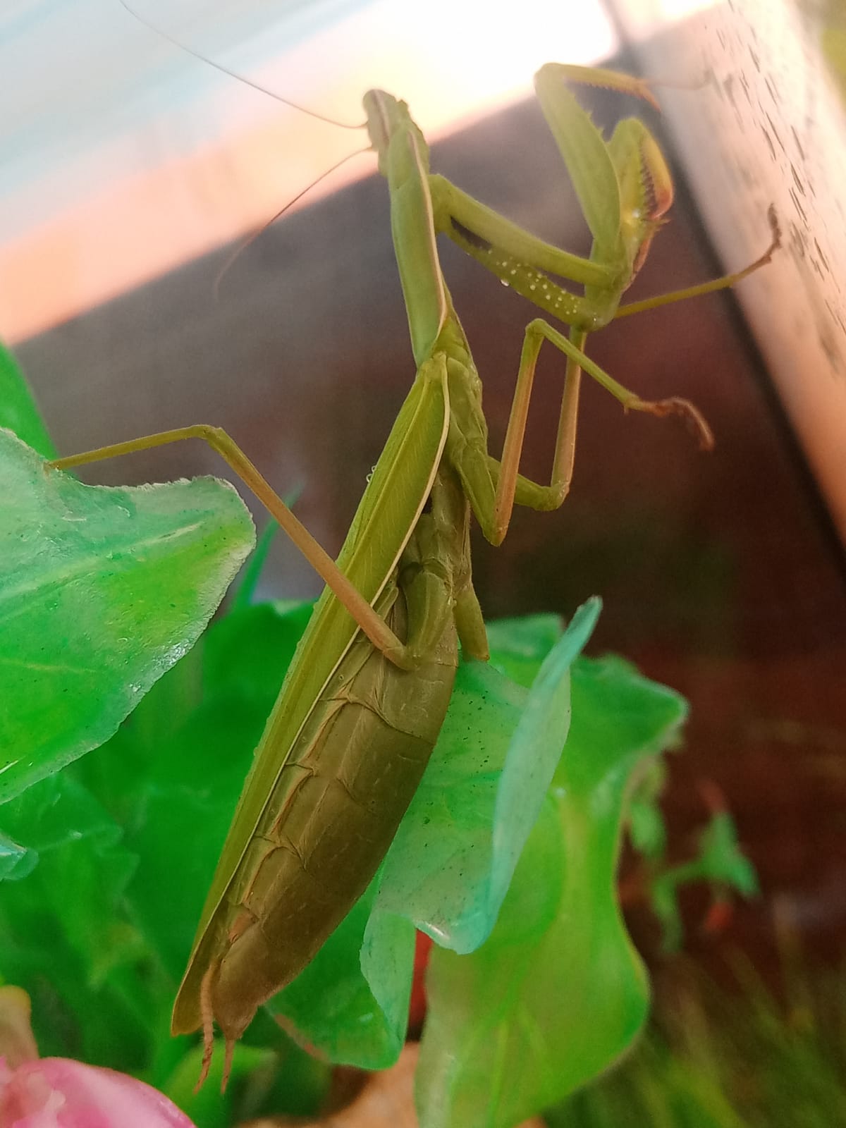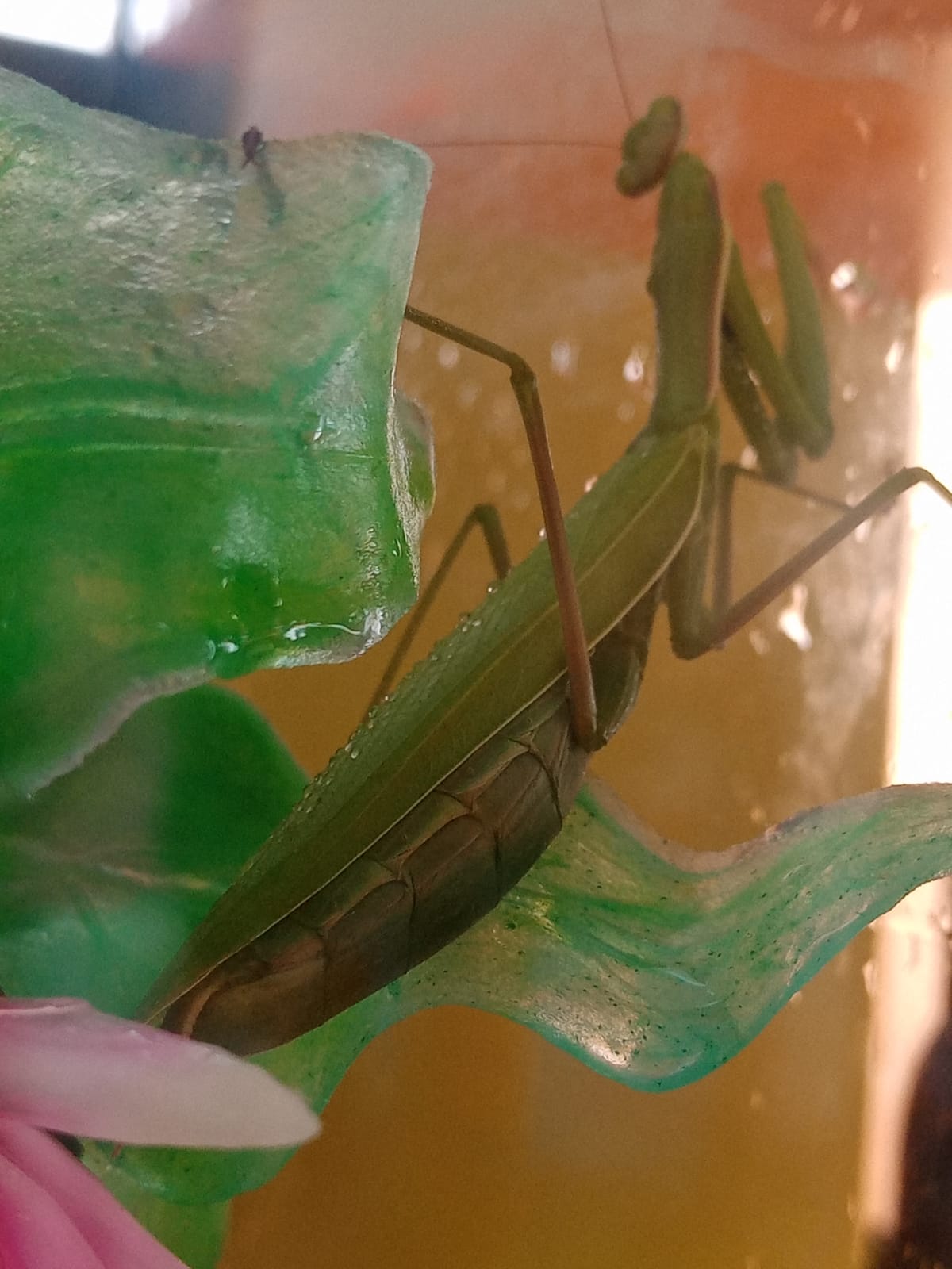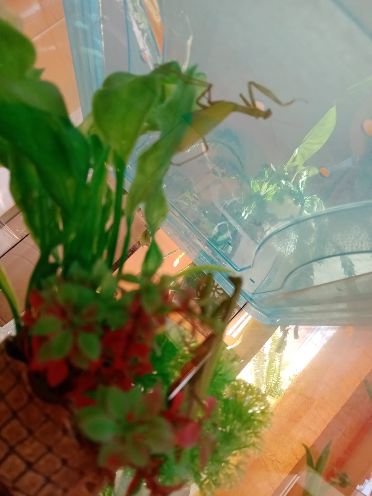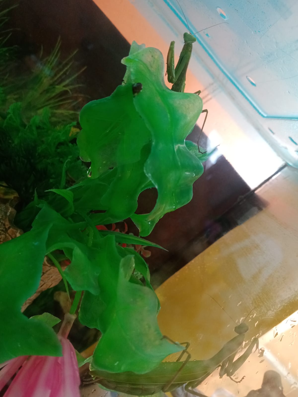 ????У воспитанников группы "Почемучки" появился настоящий живой уголок. Теперь в нем живёт улитка, которая питается зелёными листьями. И даже два богомола! И всех этих существ ребята приютили с улицы, а теперь старательно за ними ухаживают. Заходите и вы посмотреть! ????