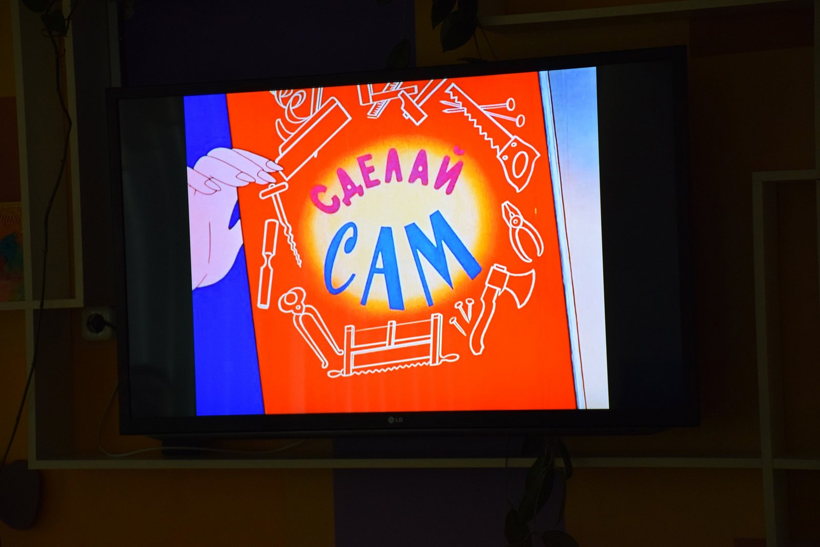 Закончилось занятие просмотром мультфильма "Вовка в тридевятом царстве".
