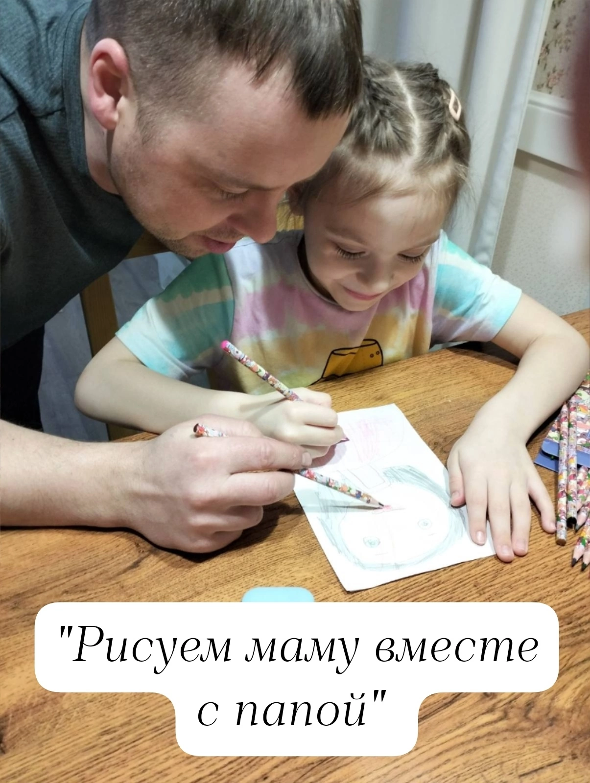 Рисуем маму вместе с папой