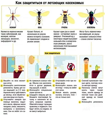 Избегайте контакта с осами, пчёлами, шмелями и шершнями.