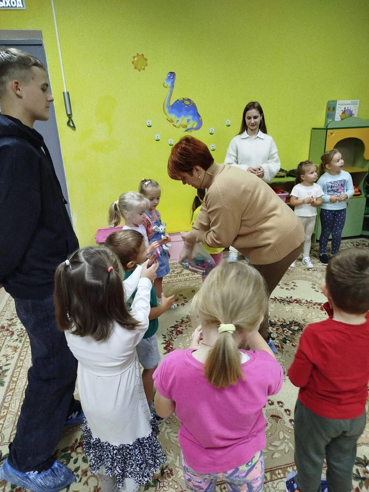 18 октября в детский сад № 20 "Колобок" пришли замечательные ученики - Павличенко М., Лаврентьева А., Парусов М., Платоненко Б. из отряда волонтёров МБОУ «Мелеховская СОШ №1 имени И.П. Монахова». Они приняли участие в областной добровольческой акции «Осенняя неделя добра-2024».