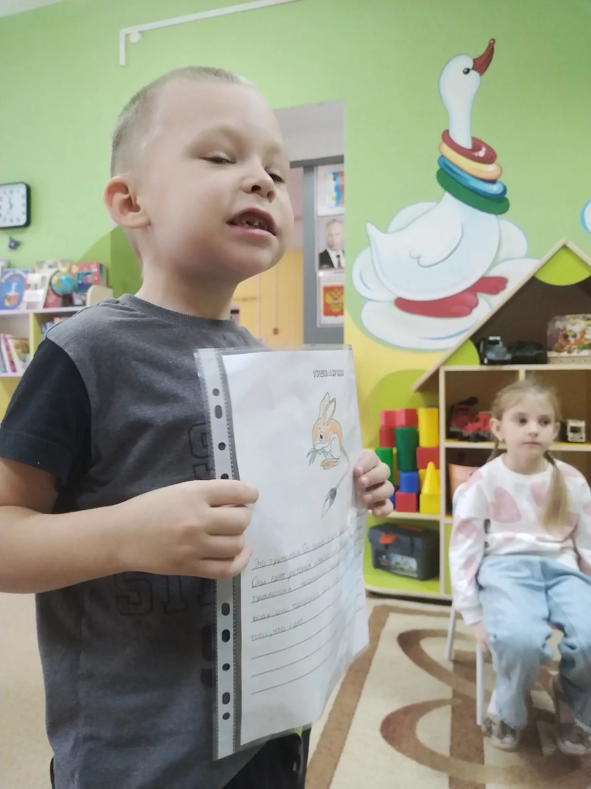 ????А теперь и ребята подготовительной группы № 3 поделились своим выполненным домашним заданием. Они рассказали своим одногруппниками про различных животных: где они обитают, чем питаются, как называются их детеныши.????
