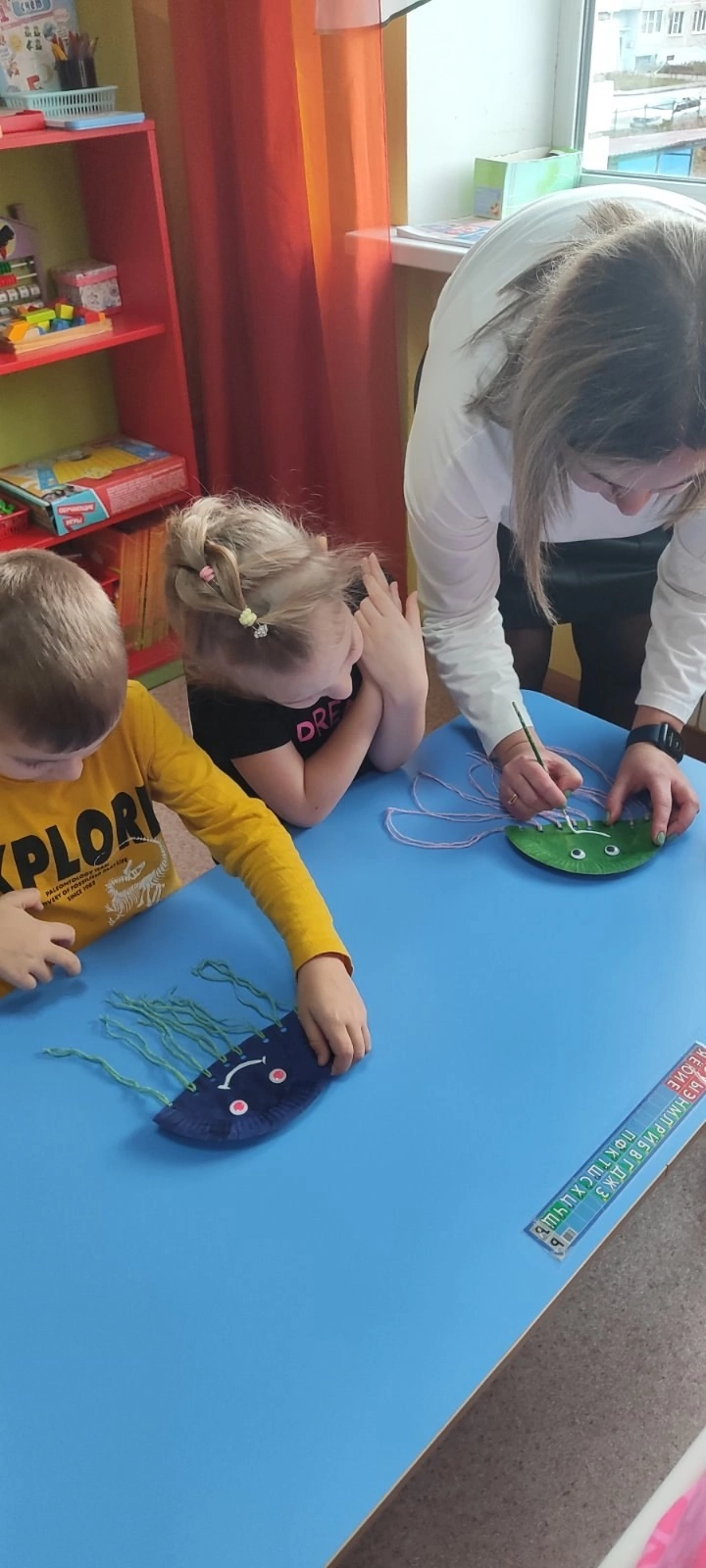 ????Вторник. Гогина Дарья Сергеевна пришла к ребятам, чтобы рассказать и показать, как сделать медуз из обычных бумажных тарелок и ниток. Посмотрите, какие весёлые морские обитатели получились!???? Что же будет в среду?