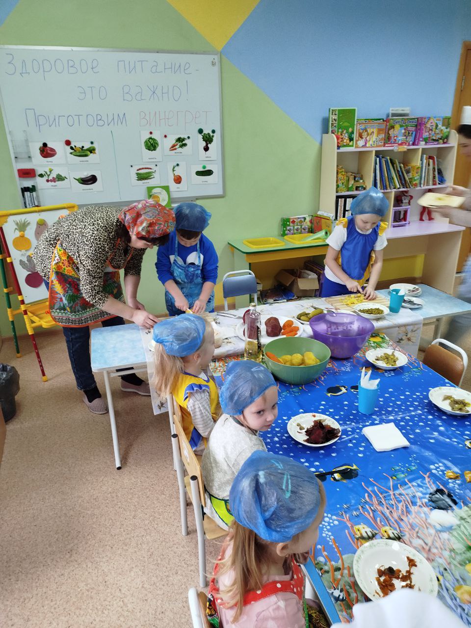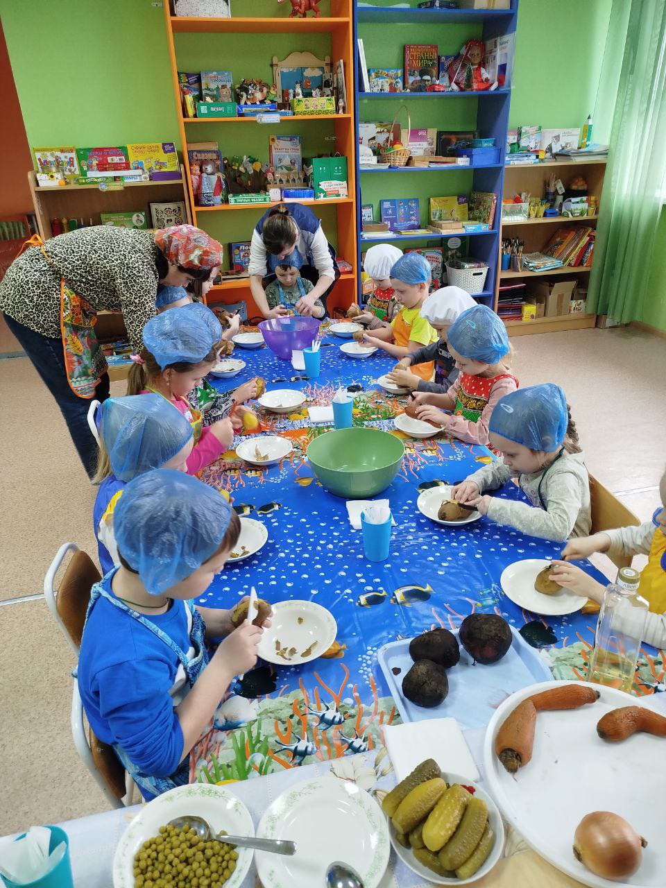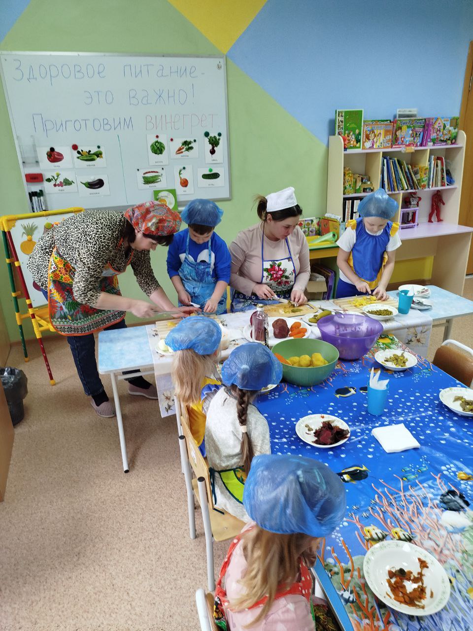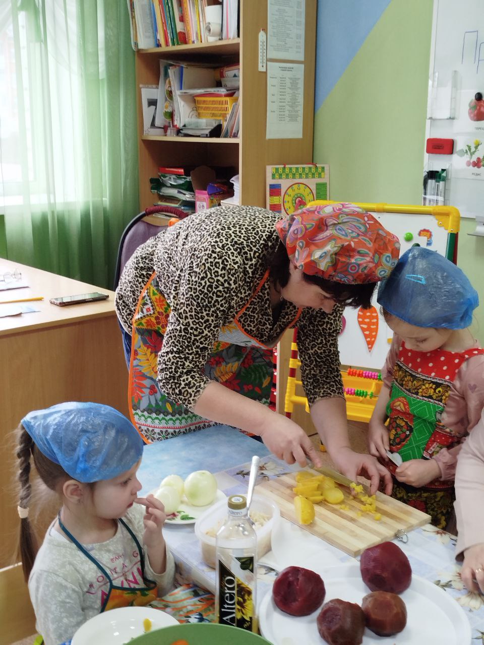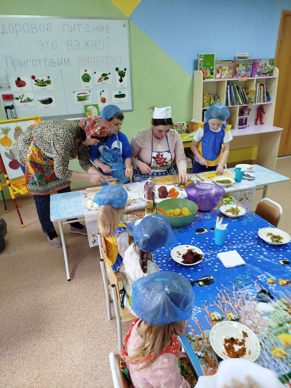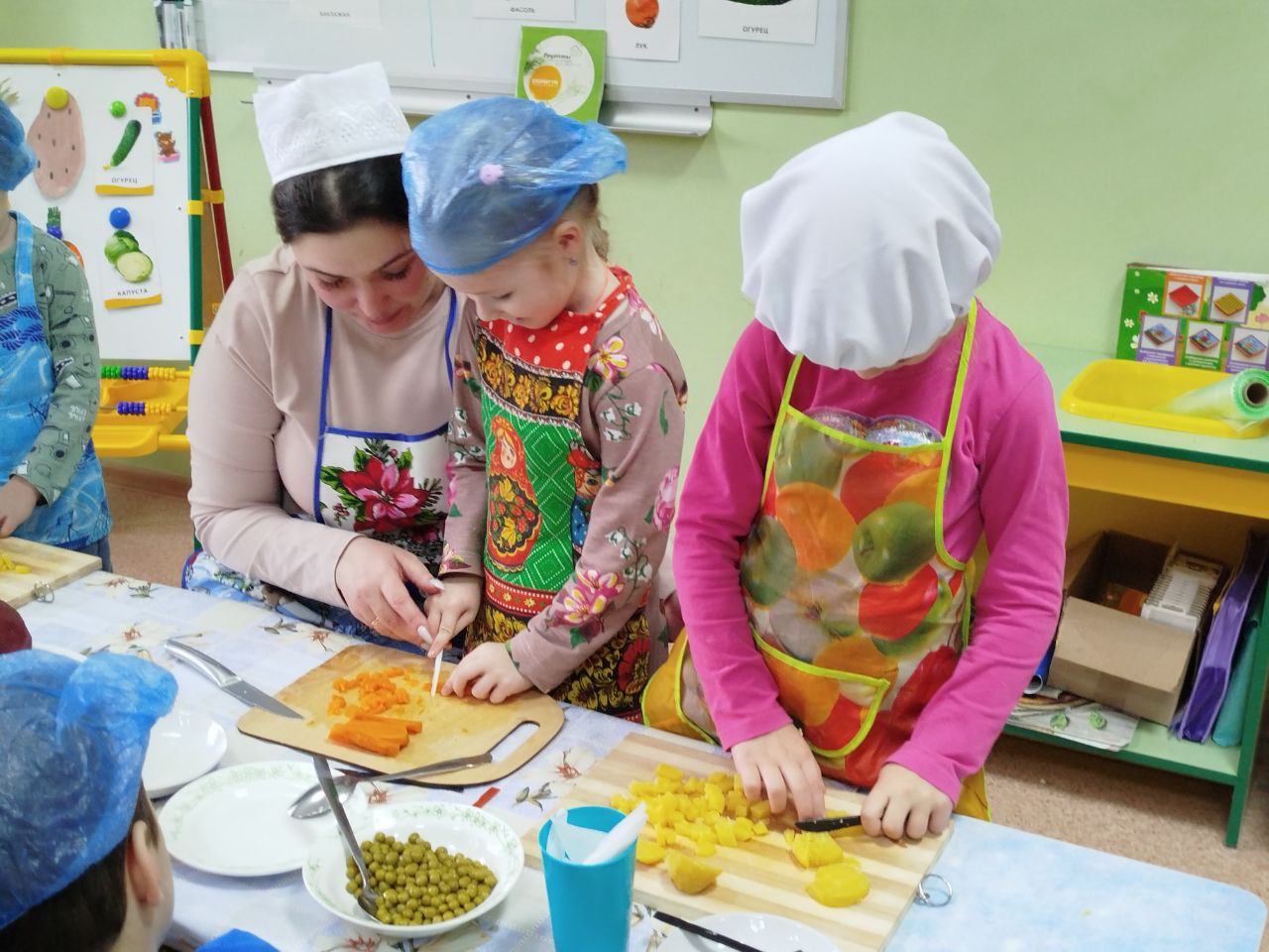 12 февраля в нашей группе "Почемучки " был проведён кулинарный мастер-класс по приготовлению винегрета. Задачи: закрепить названия овощей и продуктов, входящих в состав винегрета; продолжать учить ребят понимать смысл пословиц и поговорок, умение отгадывать загадки; формировать умение пользоваться ножом, нарезая овощи мелкими кусочками; воспитывать трудолюбие, аккуратность, желание доводить начатое дело до конца, помогая друг другу.