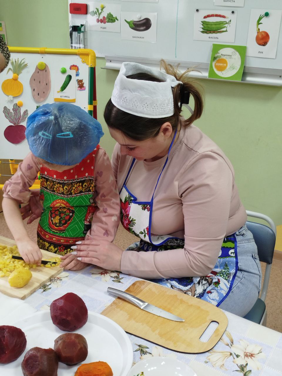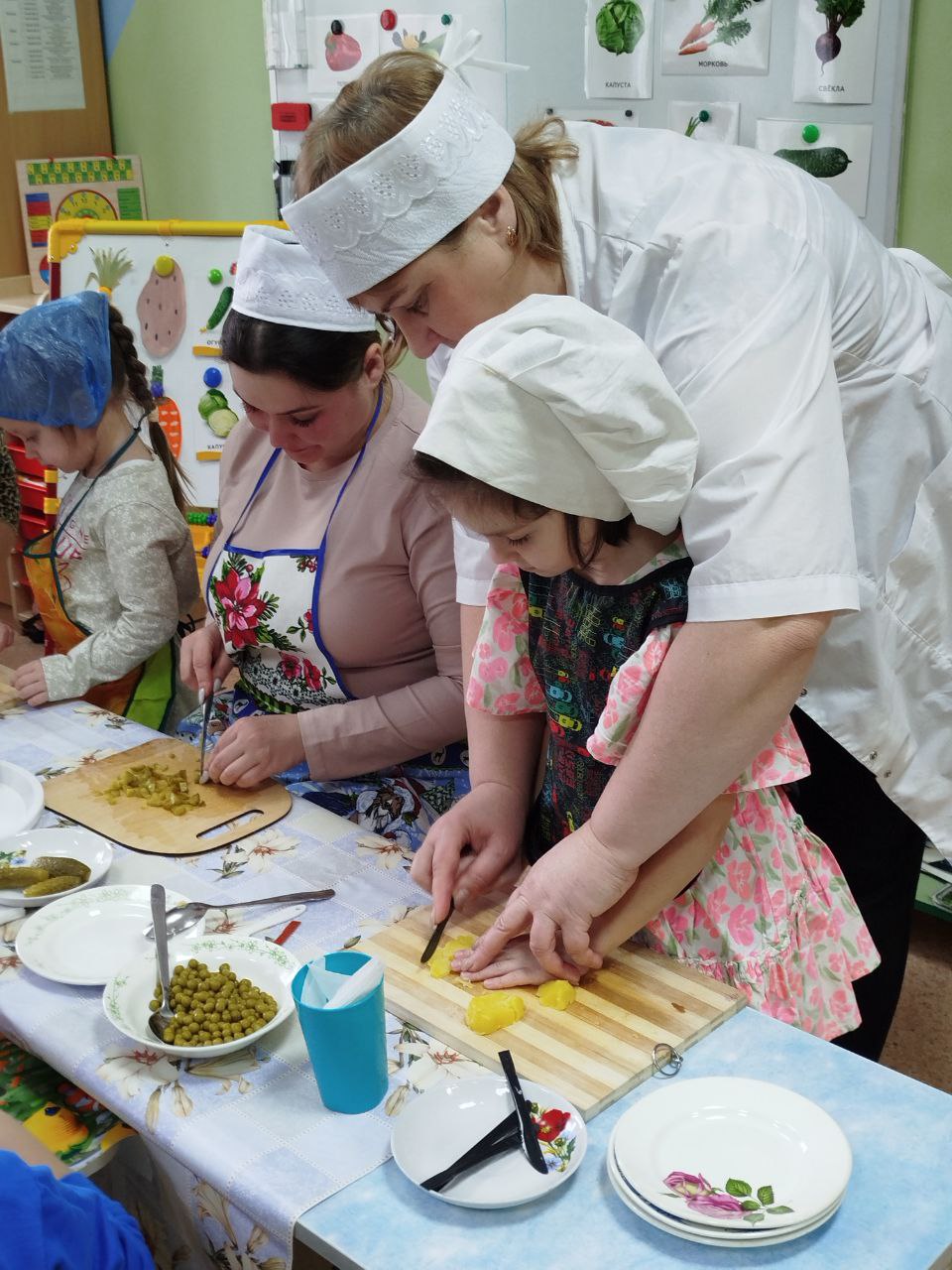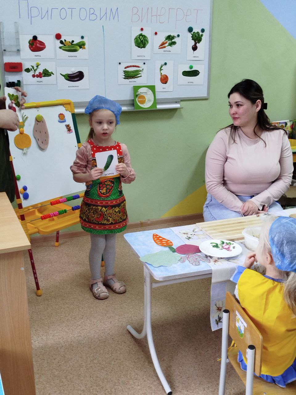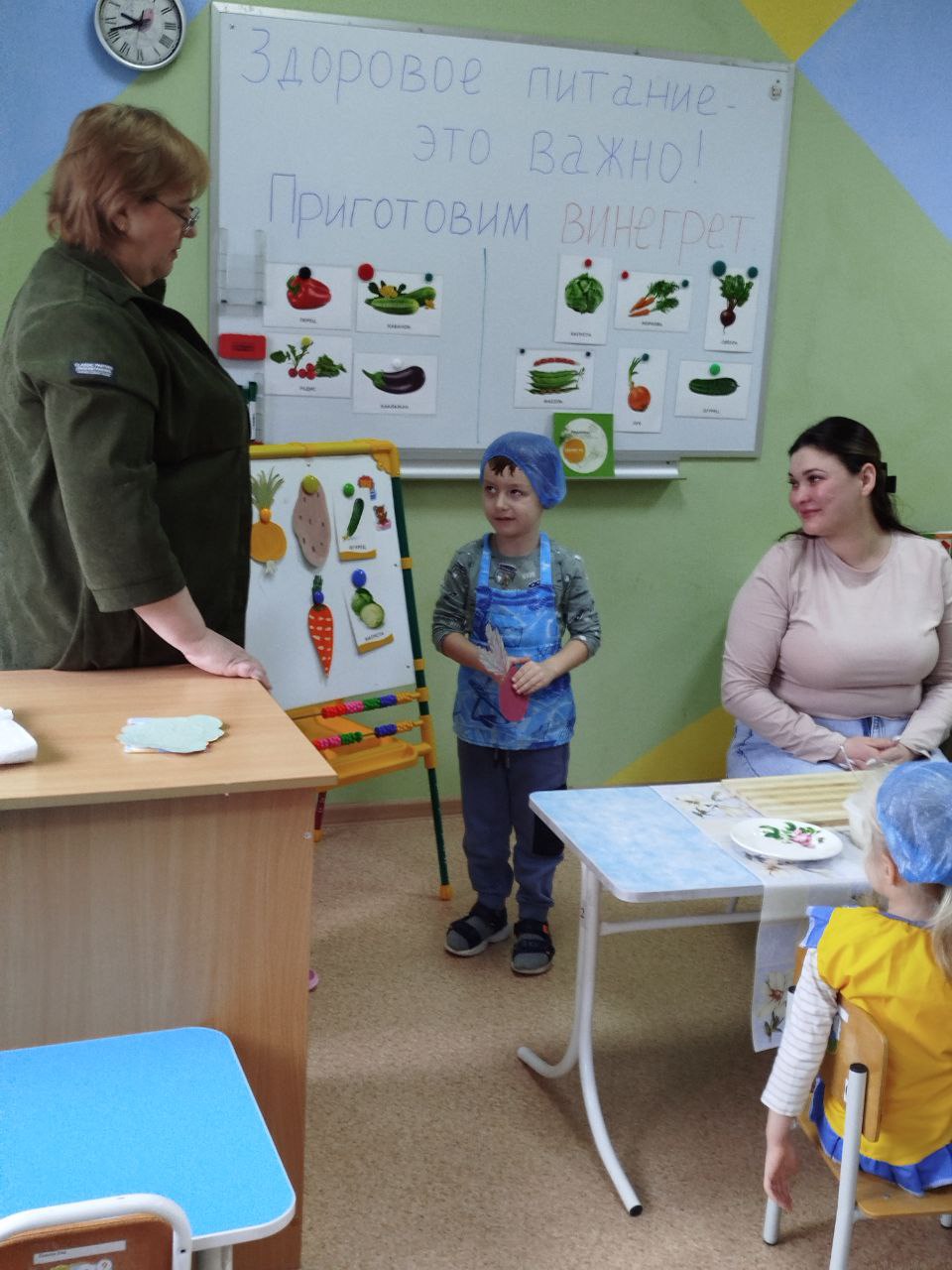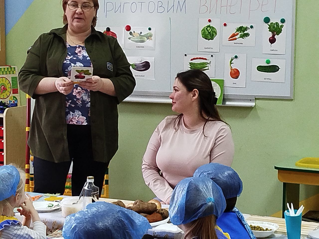 12 февраля в нашей группе "Почемучки " был проведён кулинарный мастер-класс по приготовлению винегрета. Задачи: закрепить названия овощей и продуктов, входящих в состав винегрета; продолжать учить ребят понимать смысл пословиц и поговорок, умение отгадывать загадки; формировать умение пользоваться ножом, нарезая овощи мелкими кусочками; воспитывать трудолюбие, аккуратность, желание доводить начатое дело до конца, помогая друг другу.
