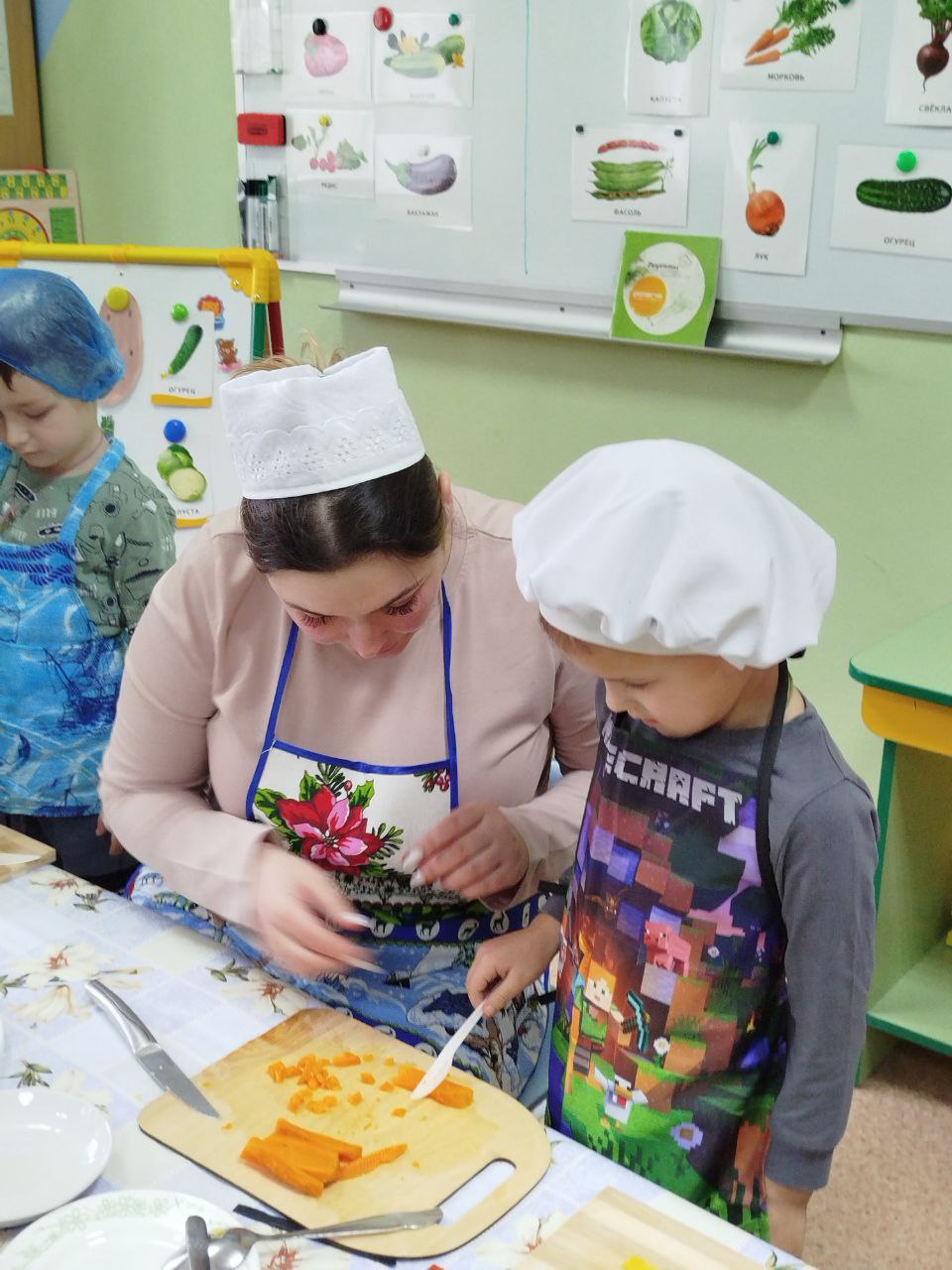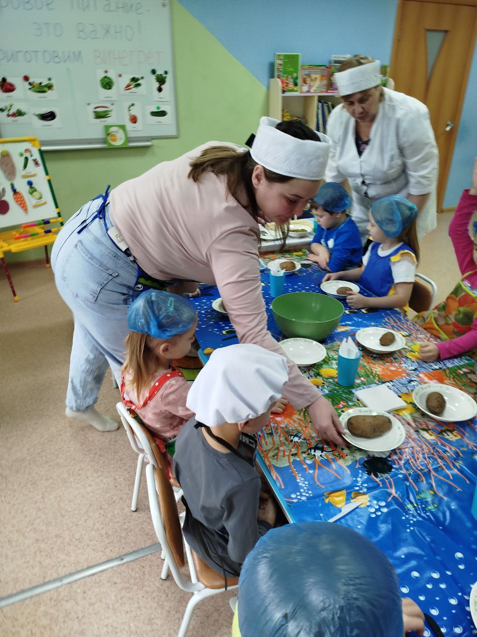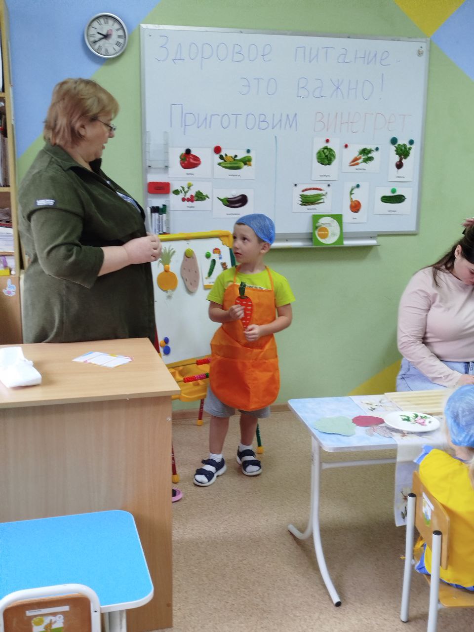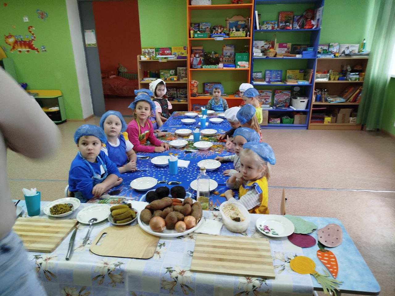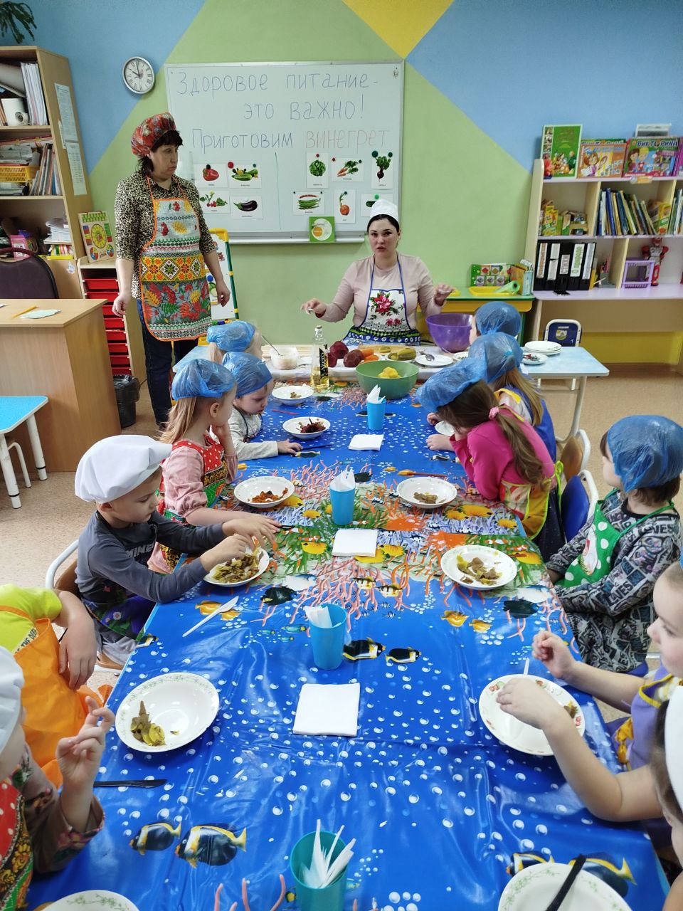 12 февраля в нашей группе "Почемучки " был проведён кулинарный мастер-класс по приготовлению винегрета. Задачи: закрепить названия овощей и продуктов, входящих в состав винегрета; продолжать учить ребят понимать смысл пословиц и поговорок, умение отгадывать загадки; формировать умение пользоваться ножом, нарезая овощи мелкими кусочками; воспитывать трудолюбие, аккуратность, желание доводить начатое дело до конца, помогая друг другу.