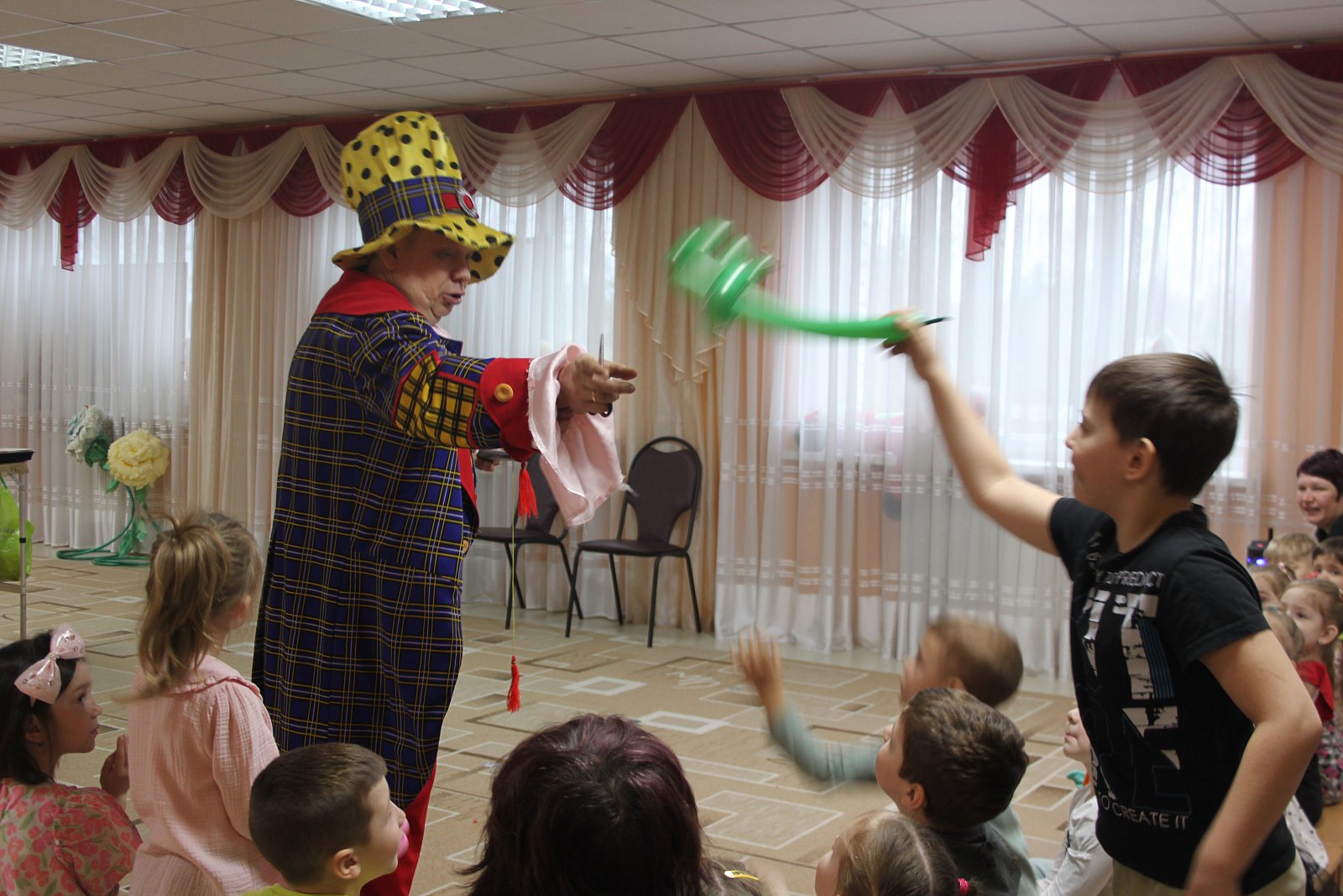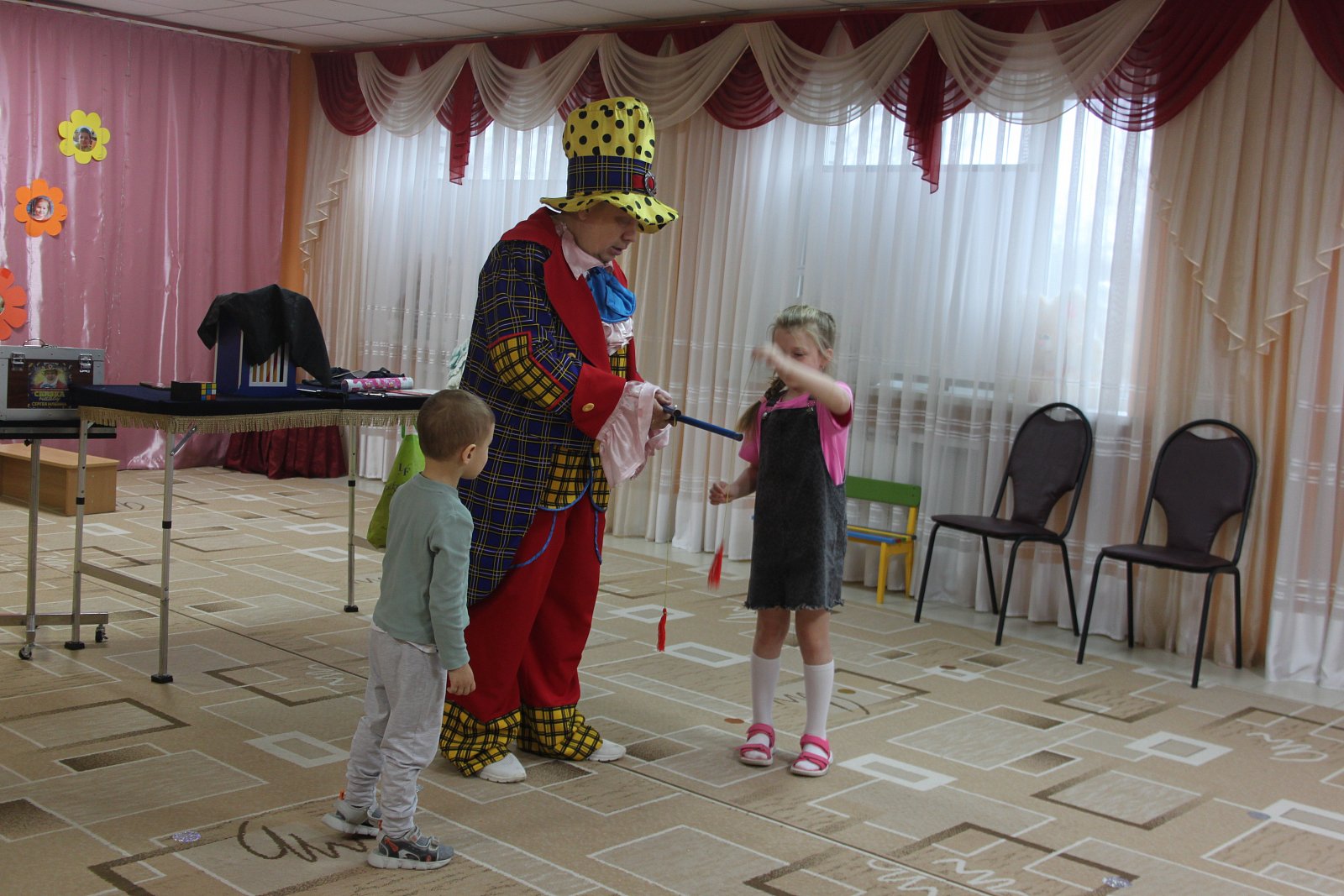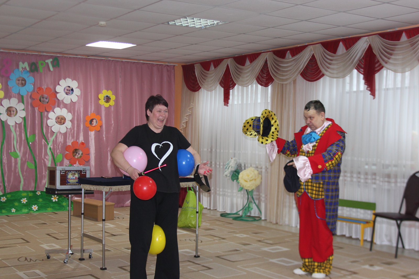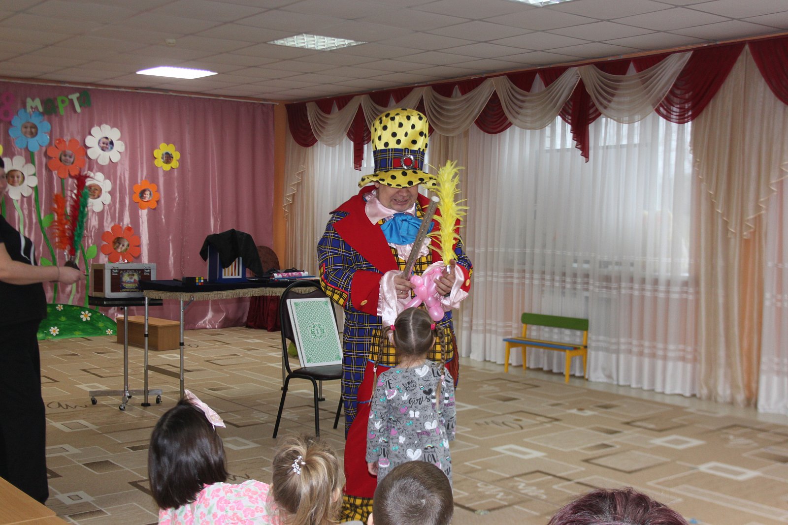 Поэтому у нас в музыкальном зале случилась Сказка: весёлая музыка, фокусы, много смеха и воздушных шаров.