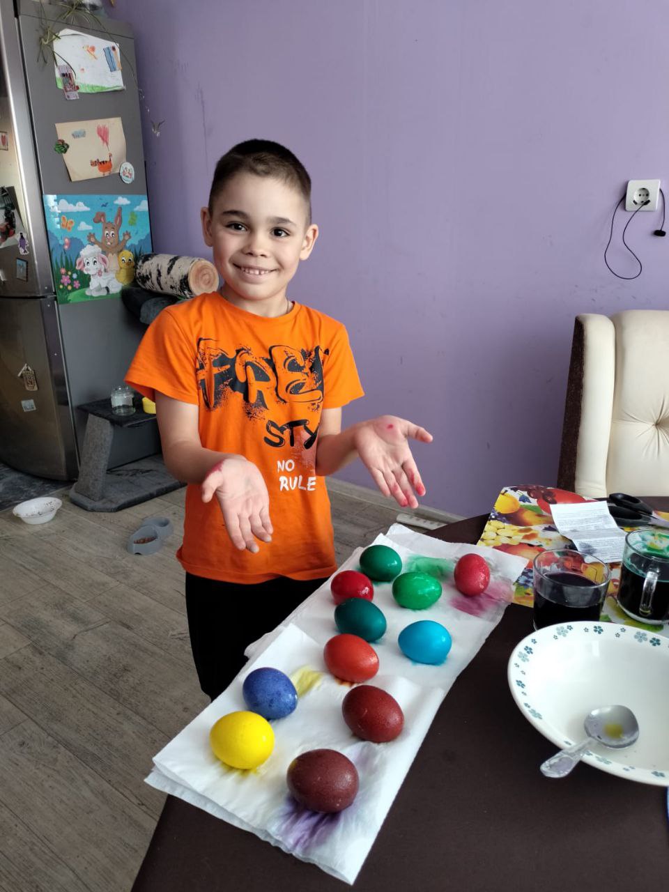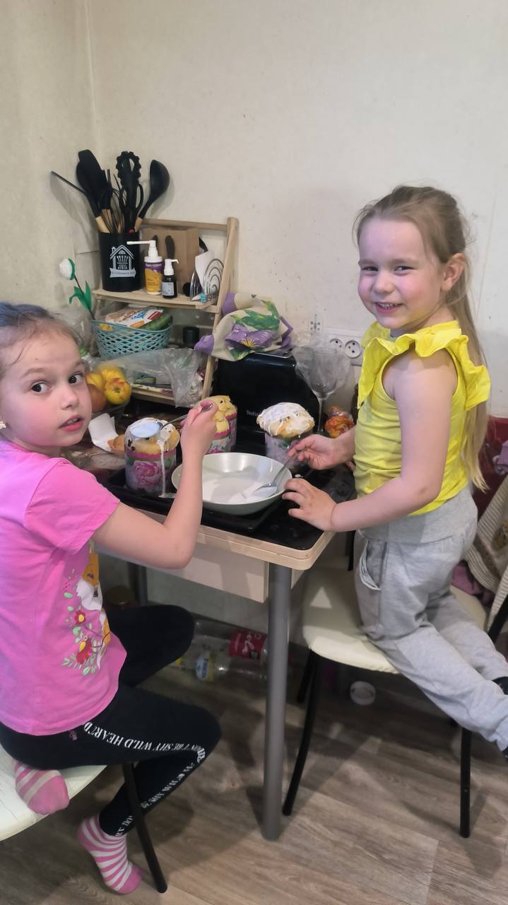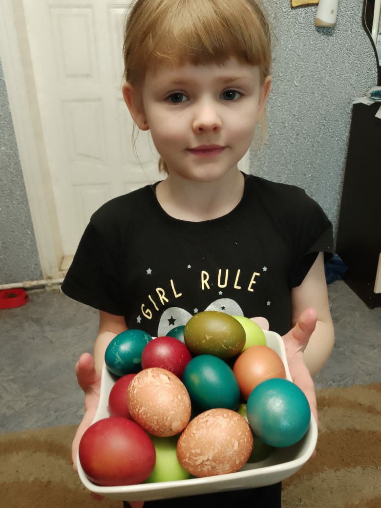 А вот так встретили праздник Пасхи наши старшие ребята. Конечно же, помогали родителям в подготовке, а потом наслаждались своими творениями - яйцами и куличами.????????
