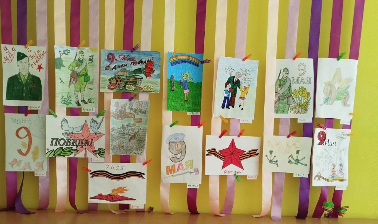 Накануне 9 мая в нашей группе "Почемучки" организована тематическая выставка рисунков "Краски Великой Победы", на которой ребята совместно с родителями представили своё видение праздника 9 Мая, и своим творчеством говорят спасибо за Жизнь и Мир на земле! Каждая работа выполнена с большой любовью, несёт в себе тепло и доброту.