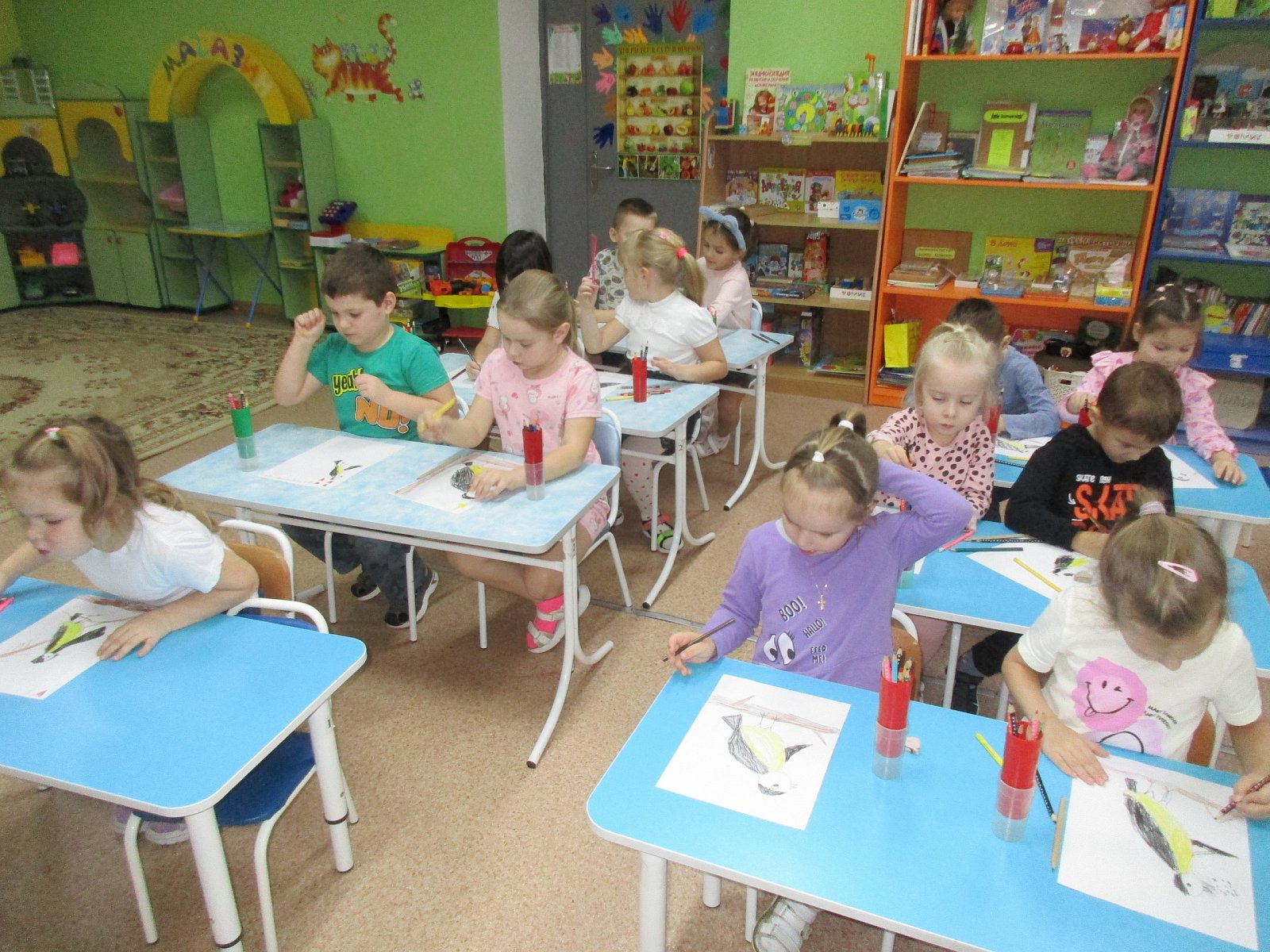 Сегодня на занятии по программе "Сказки от капризов" ребята познакомились с рассказом Г. Скребицкого и В. Чаплиной "Посмотри вокруг". Дошкольники выяснили как приручить птичек к кормушкам, отличить ворону от галки и рассмотреть снежинки. А ещё узнали как измерить прибавление снега в течение зимы и поэкспериментировать с солнечными зайчиками. В конце мероприятия дети нарисовали замечательных синичек.