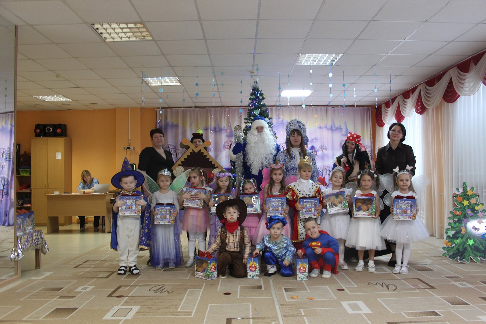 Мы сегодня не скучали, Новый год мы отмечали! А что было? Баба Яга снова вредничала и вместе со своей избушкой украла все подарки, Домовенок Кузя показывал чудеса, Дед Мороз со Снегурочкой вернули всем праздник, а ребята не отставали:пели, плясали, играли, костюмами удивляли! ????
