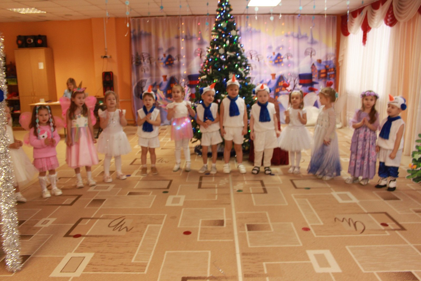 Мы сегодня не скучали, Новый год мы отмечали! А что было? Баба Яга снова вредничала и вместе со своей избушкой украла все подарки, Домовенок Кузя показывал чудеса, Дед Мороз со Снегурочкой вернули всем праздник, а ребята не отставали:пели, плясали, играли, костюмами удивляли! ????