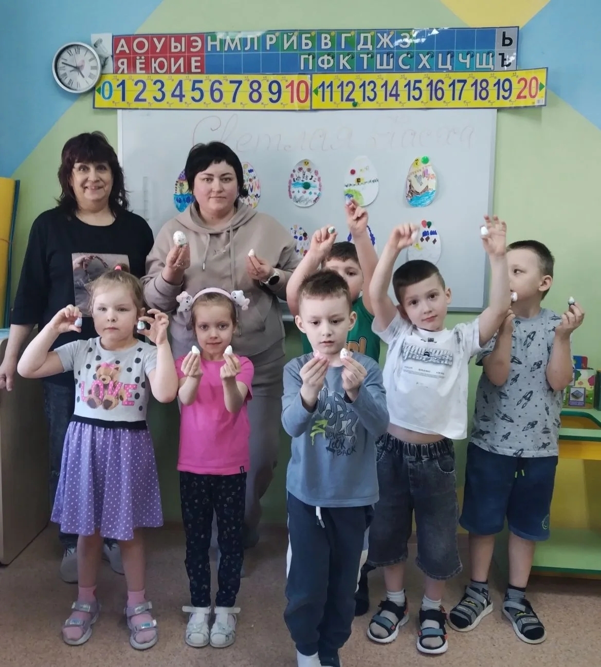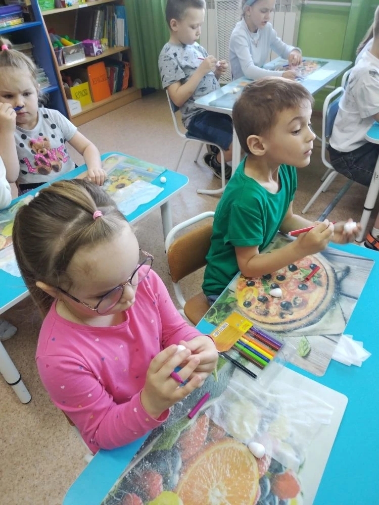 Ребята группы "Почемучки" не только красят, но и расписывают, как настоящие художники, пасхальные яйца. Согласно древнеславянским сказаниям, яичко снесла уточка. Есть яички крашенки, а есть писанки. Об этом нам и рассказала Мария Евгеньевна Максимова и показала, как и чем можно расписать объемное яицо. Спасибо большое Марии Евгеньевне, ребята были очень увлечены, а главное поняли, как всё же нелегко быть художником.