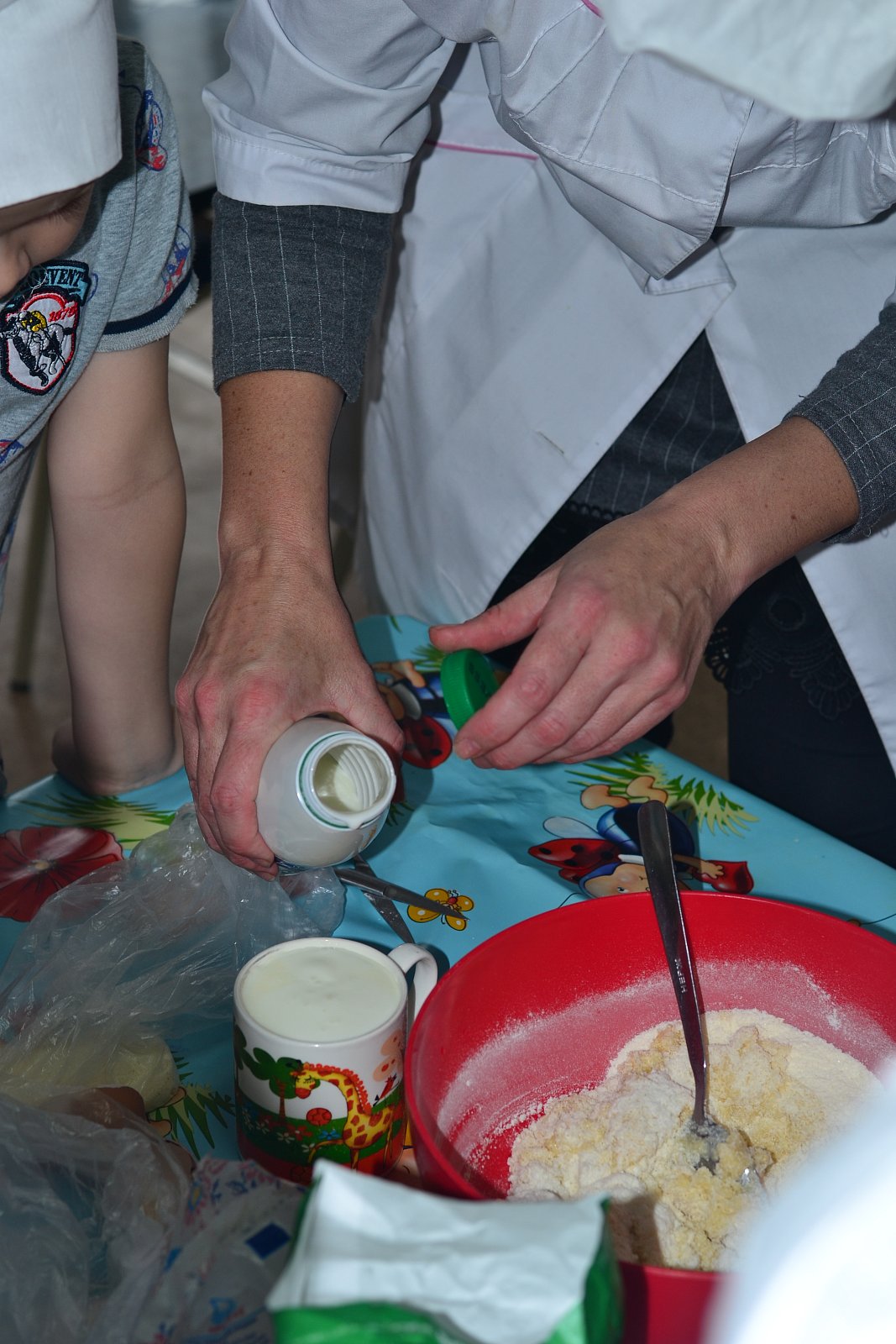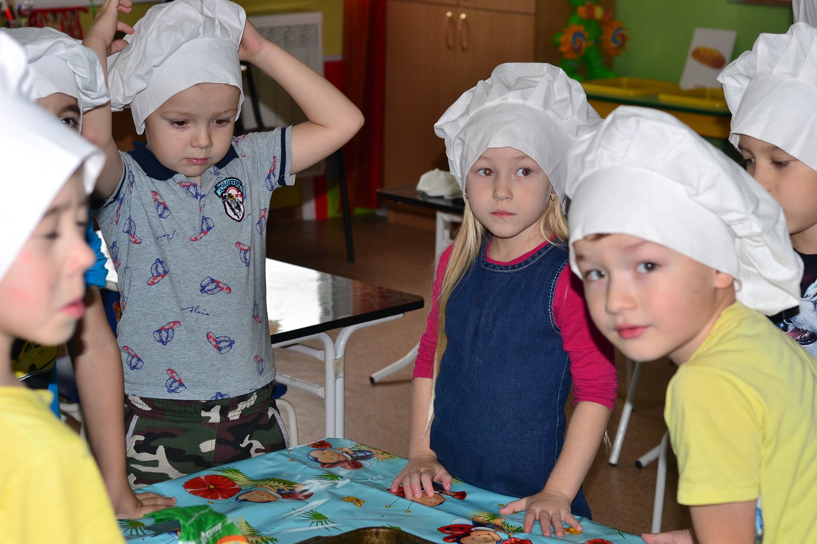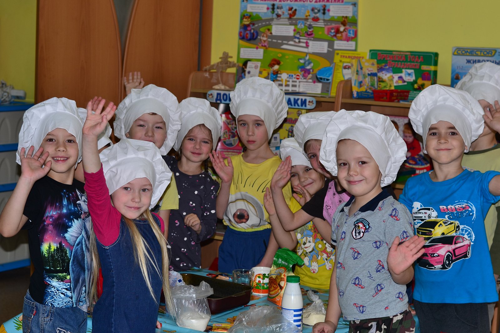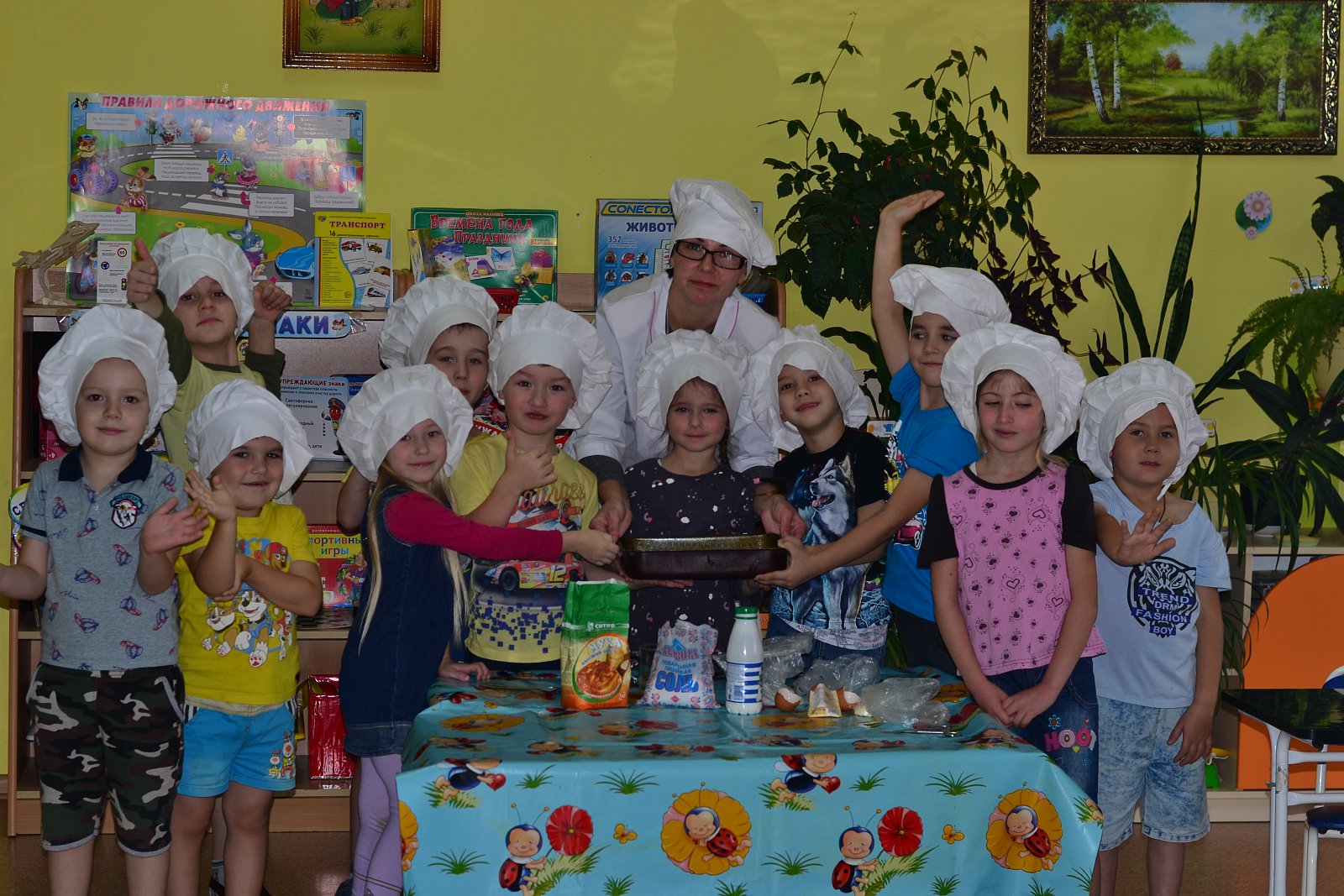 В детском саду «Колобок» каждый день ребята узнают что-то новое. В рамках недели «Эти замечательные профессии» 28 октября, ребята представили себя поварами и приготовили вкусный пирог – манник. Строго по рецепту, отмеряли муку, манную крупу, кефир, сахар, добавляли, смешивали, выкладывали в форму. Поговорили о свойства каждого из продуктов, продегустировали, проверяя, качественно ли они изготовлены. Поговорили о работе и профессии повара и кондитера.