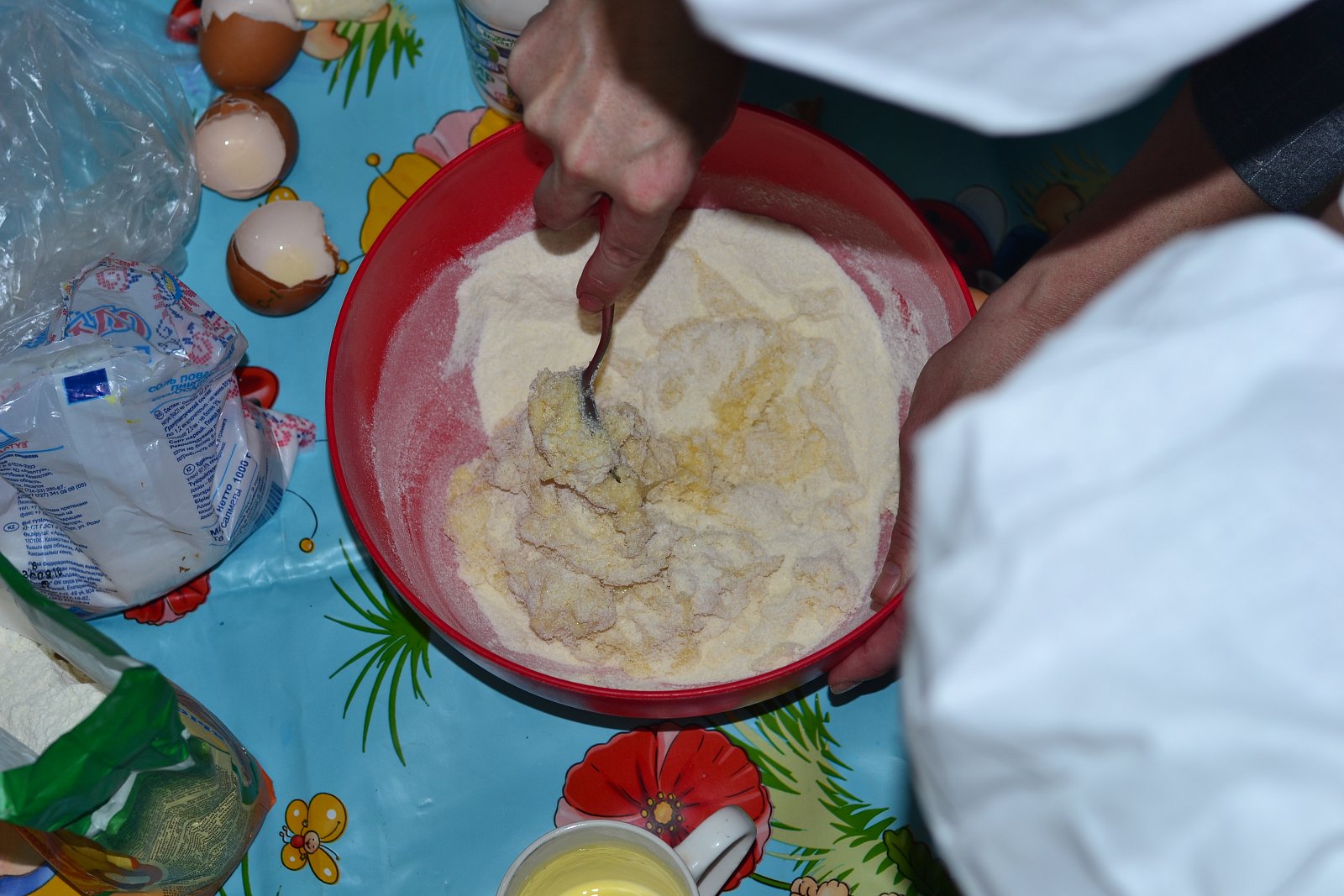 Повара детского сада помогли превратить «творчество» наших воспитанников в сладких пирог. А затем все с удовольствием попробовали плод своего труда. Ведь самый вкусный пирог тот, который ты приготовил своими руками! Теперь можно смело хвалиться своим мамам и папам своим новым умением!