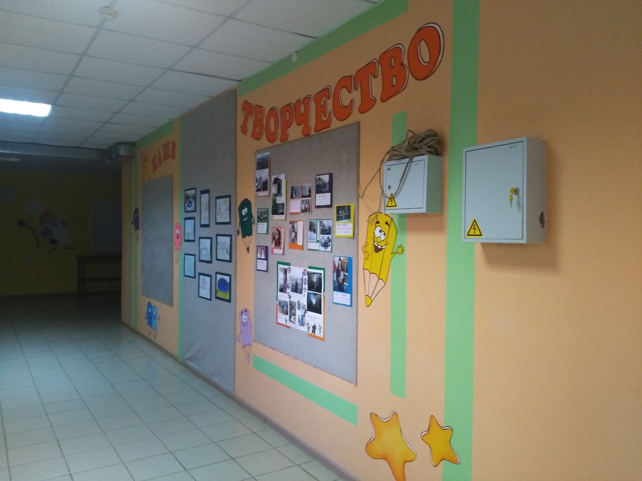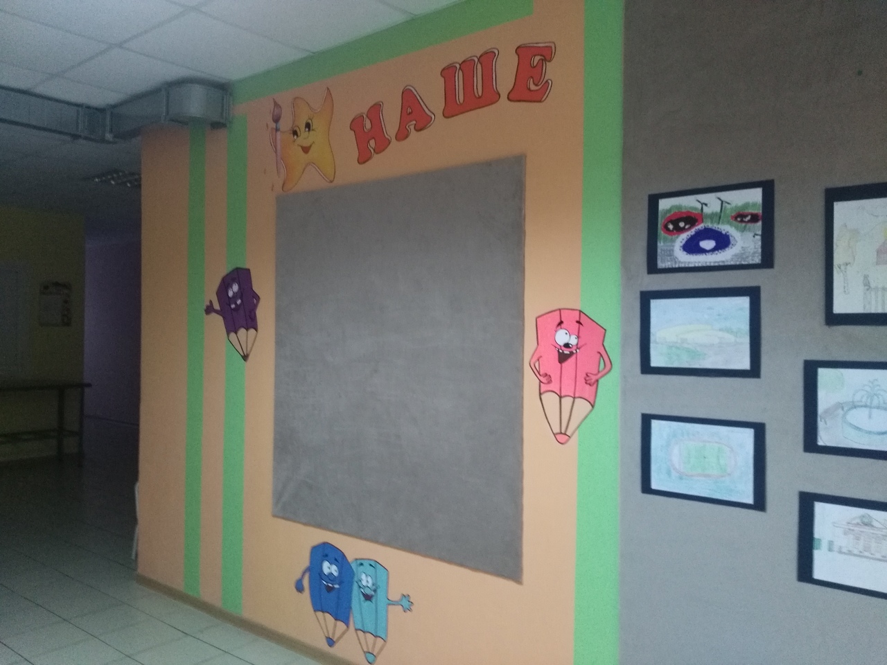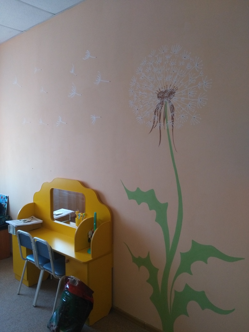 Своими руками мы обновили стенд для наших выставок. Красили, клеили, сверлили, прибивали, вымеряли. А также провели косметические работы в кабинете логопеда.